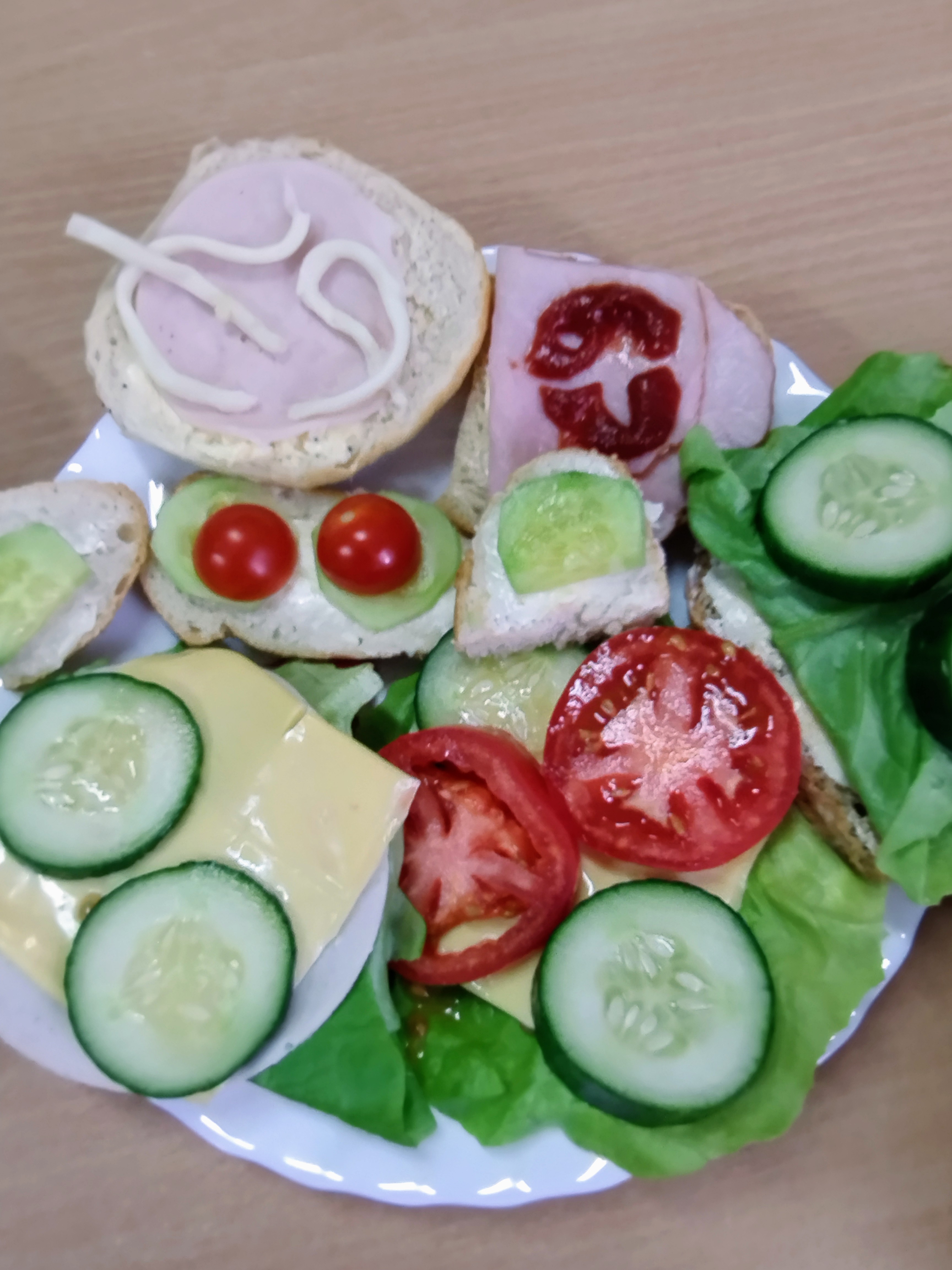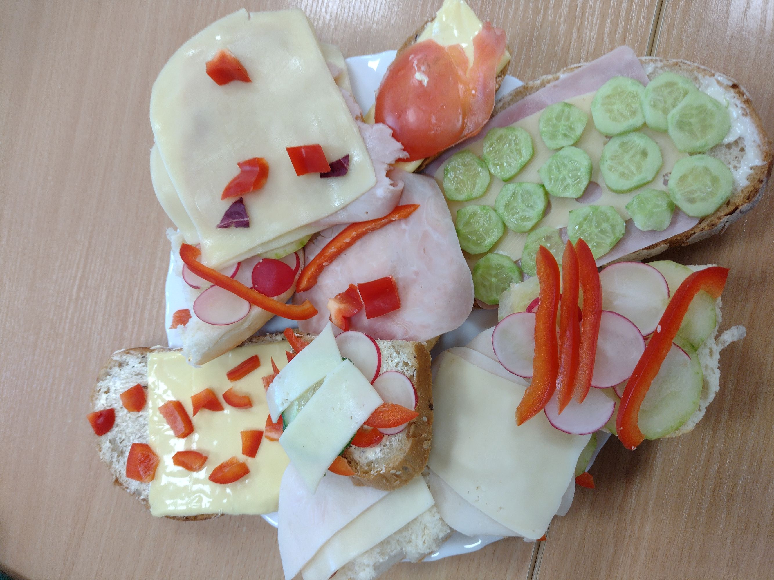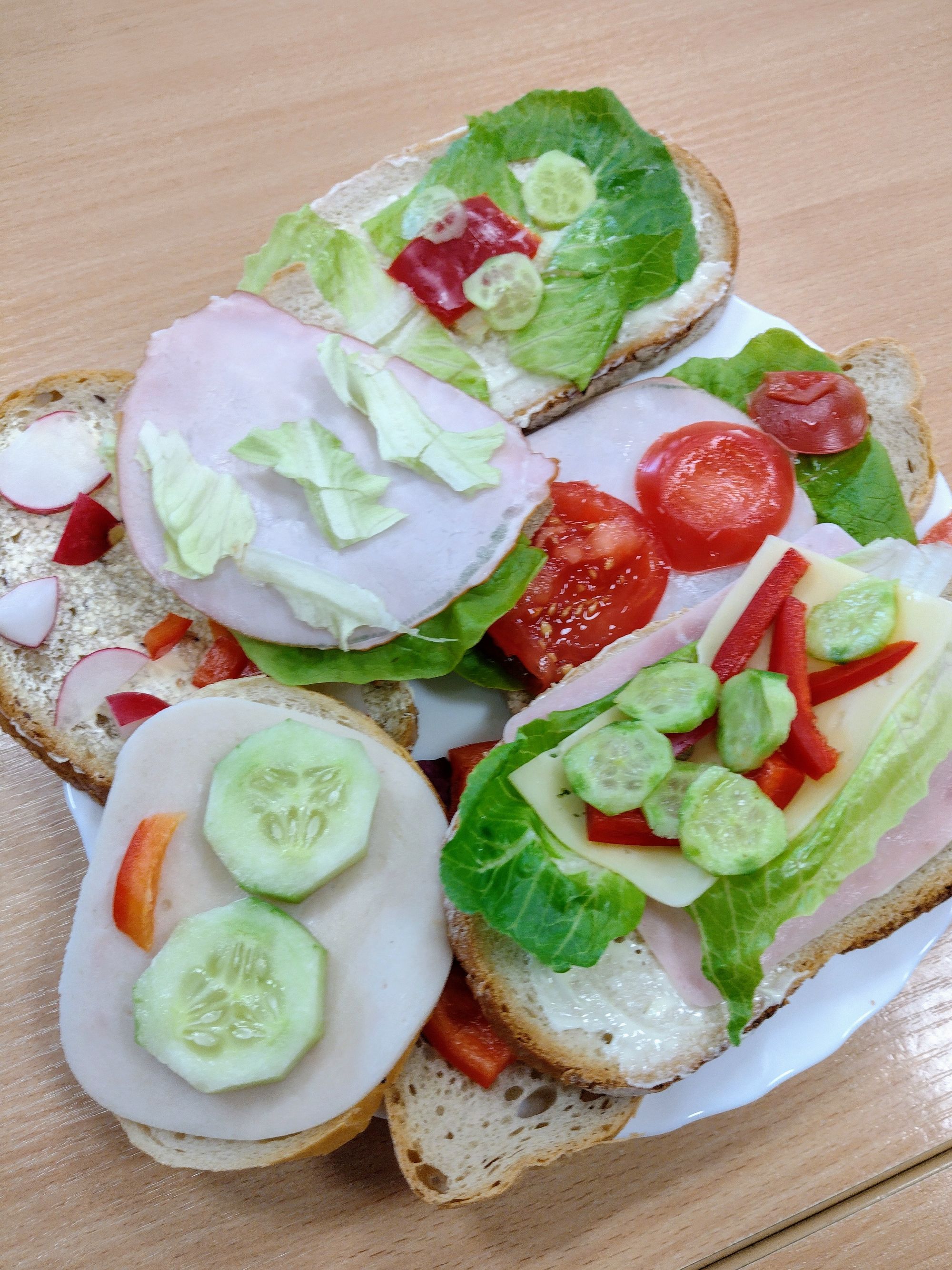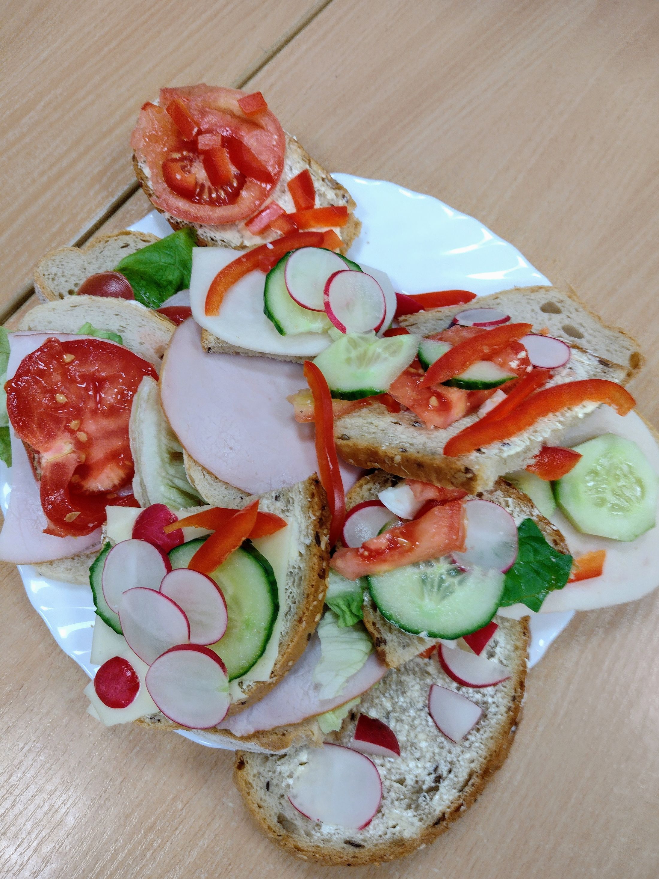 Na stołach królowało mnóstwo świeżych warzyw: chrupiące ogórki, soczyste pomidory, kolorowa papryka, rzodkiewki, a także zdrowe pasty i chude wędliny. Kanapki były nie tylko pożywne, ale i pięknie ozdobione – prawdziwe małe dzieła sztuki!