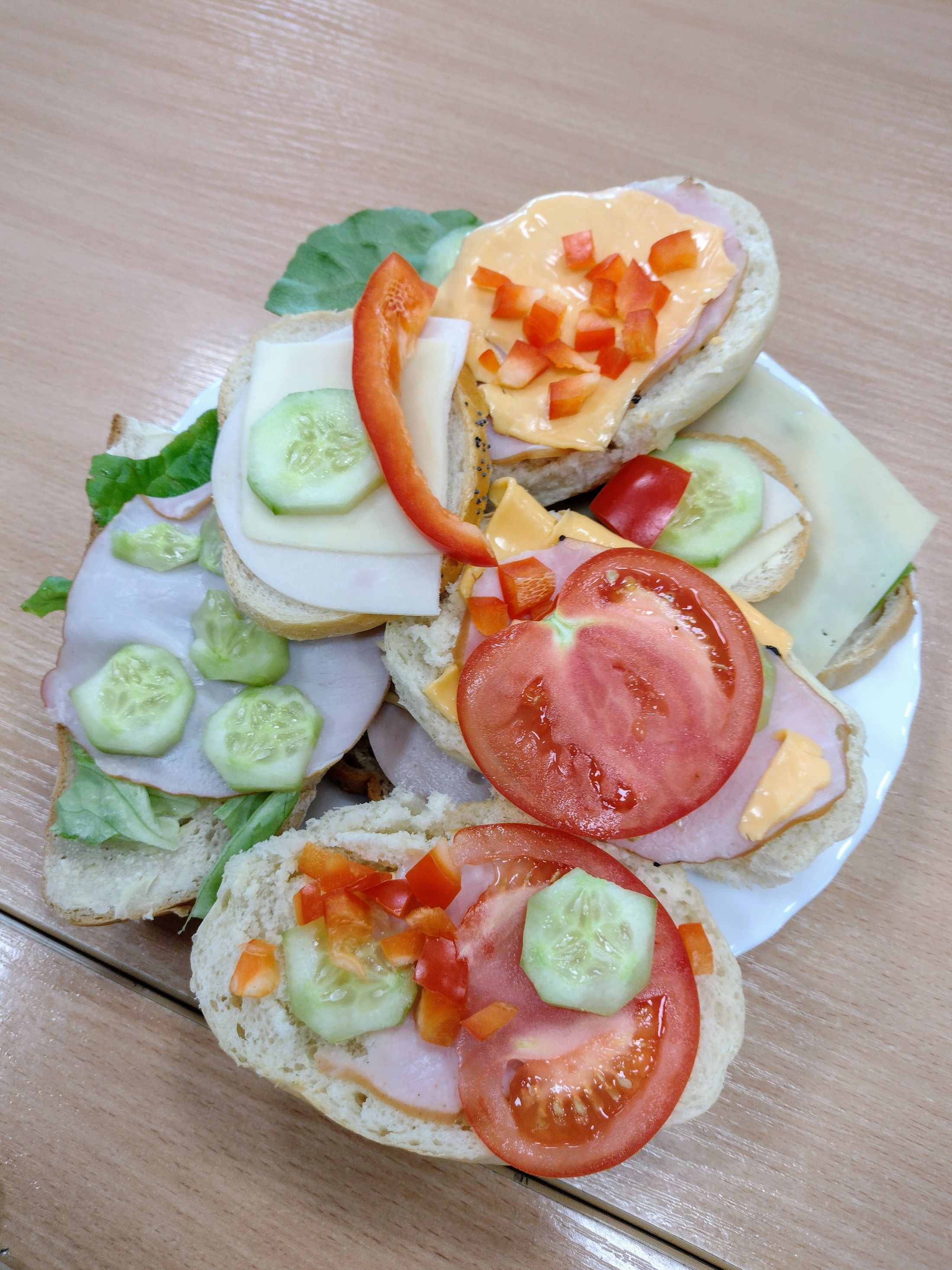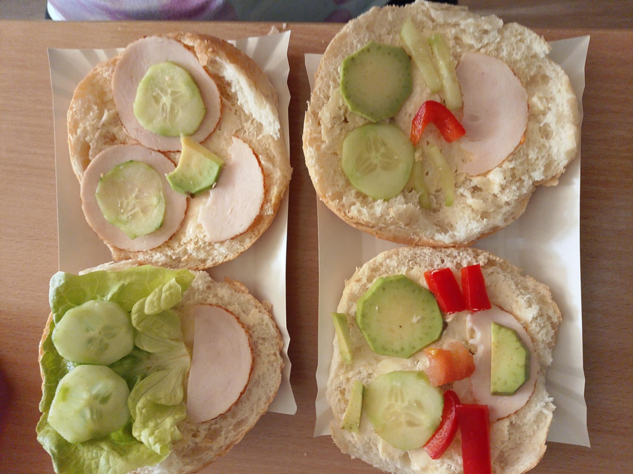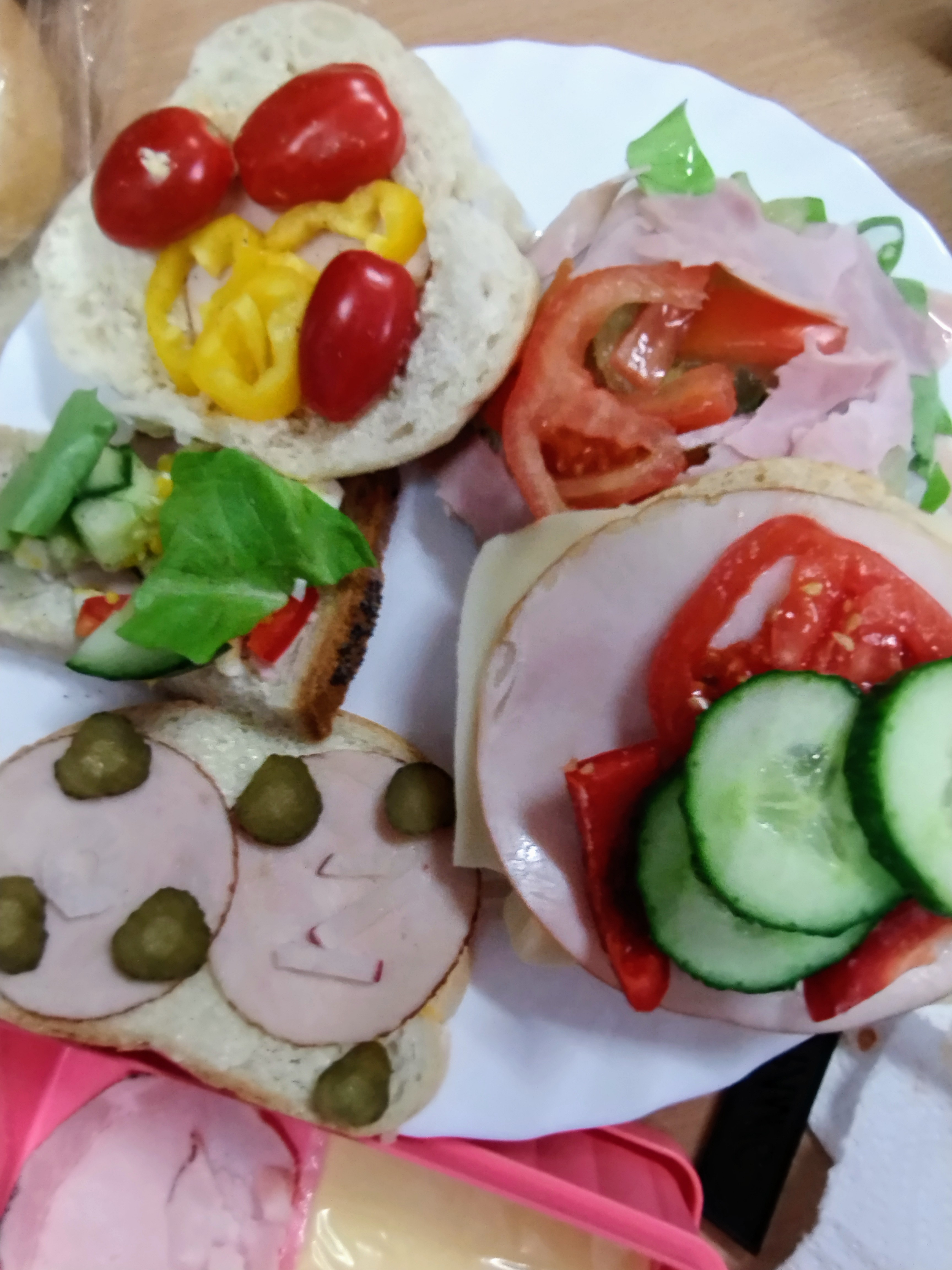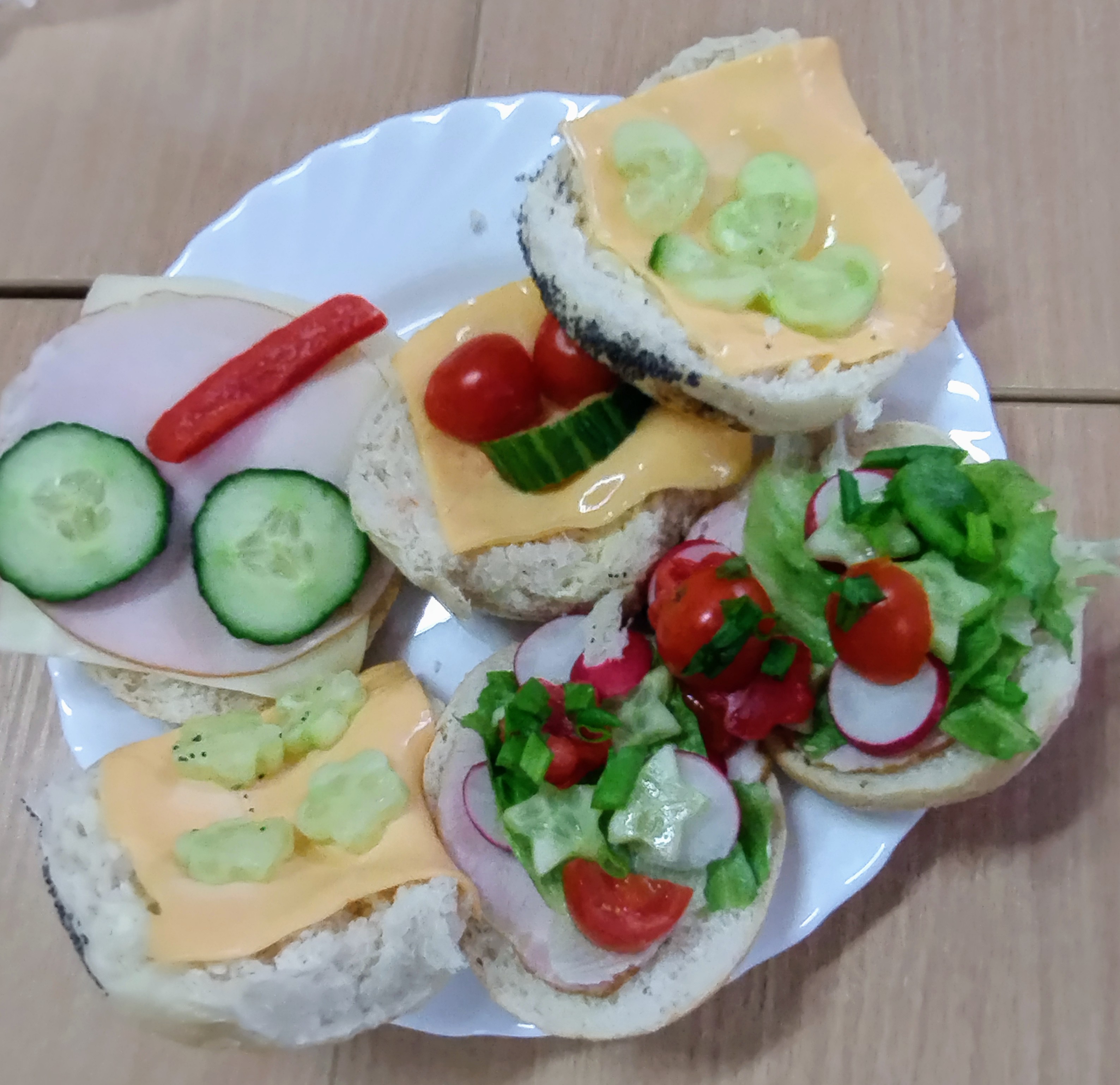 Na stołach królowało mnóstwo świeżych warzyw: chrupiące ogórki, soczyste pomidory, kolorowa papryka, rzodkiewki, a także zdrowe pasty i chude wędliny. Kanapki były nie tylko pożywne, ale i pięknie ozdobione – prawdziwe małe dzieła sztuki!