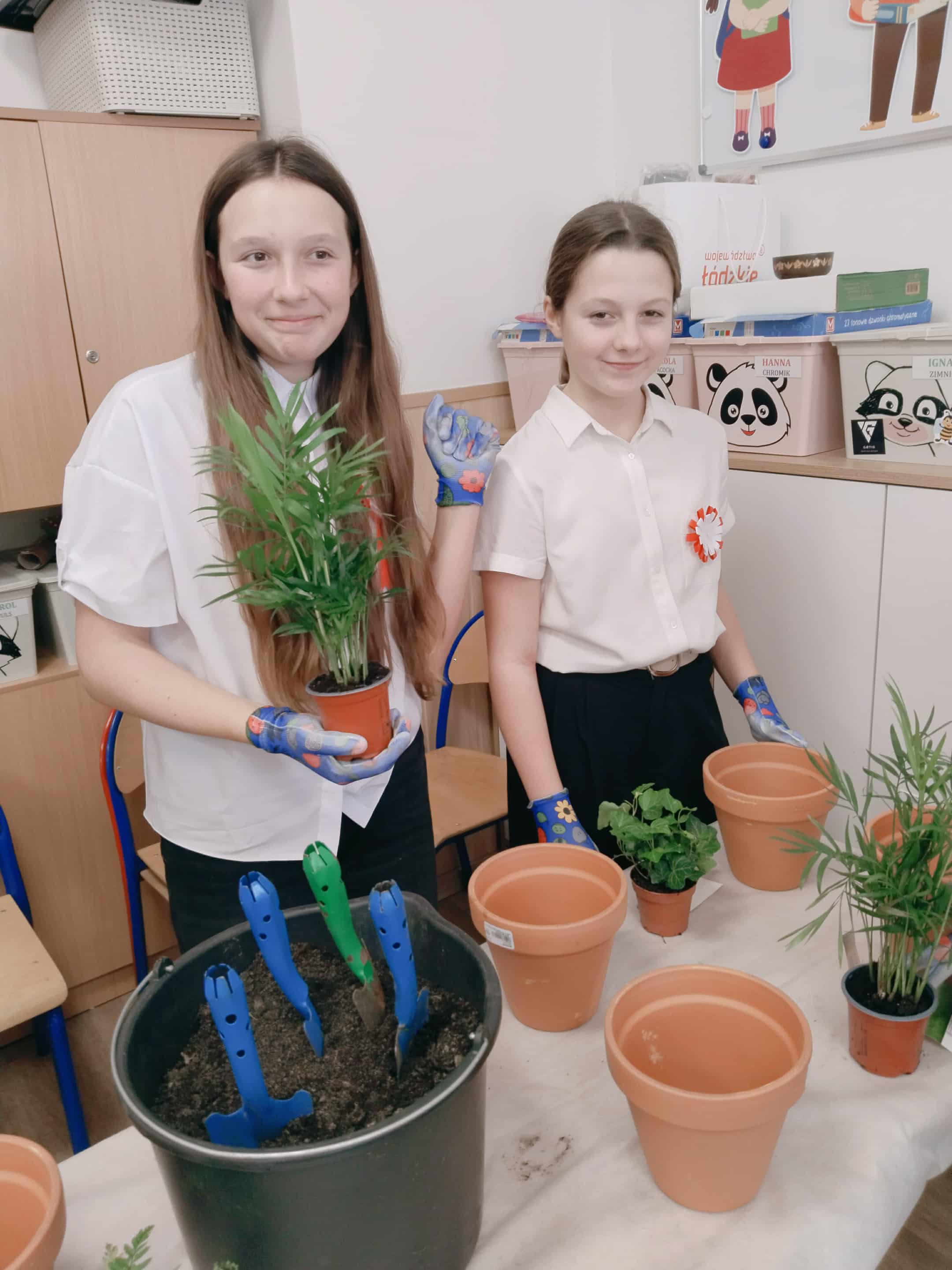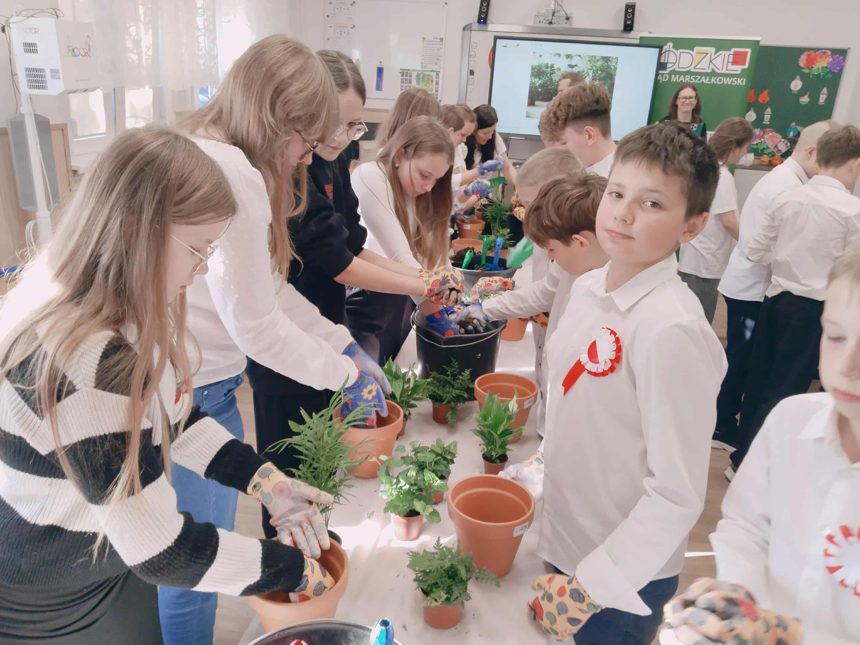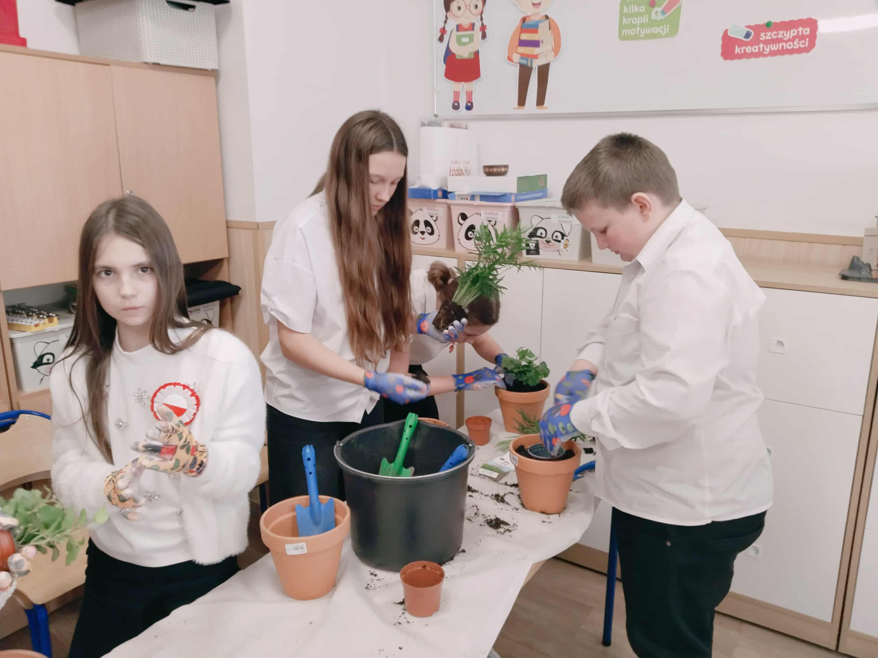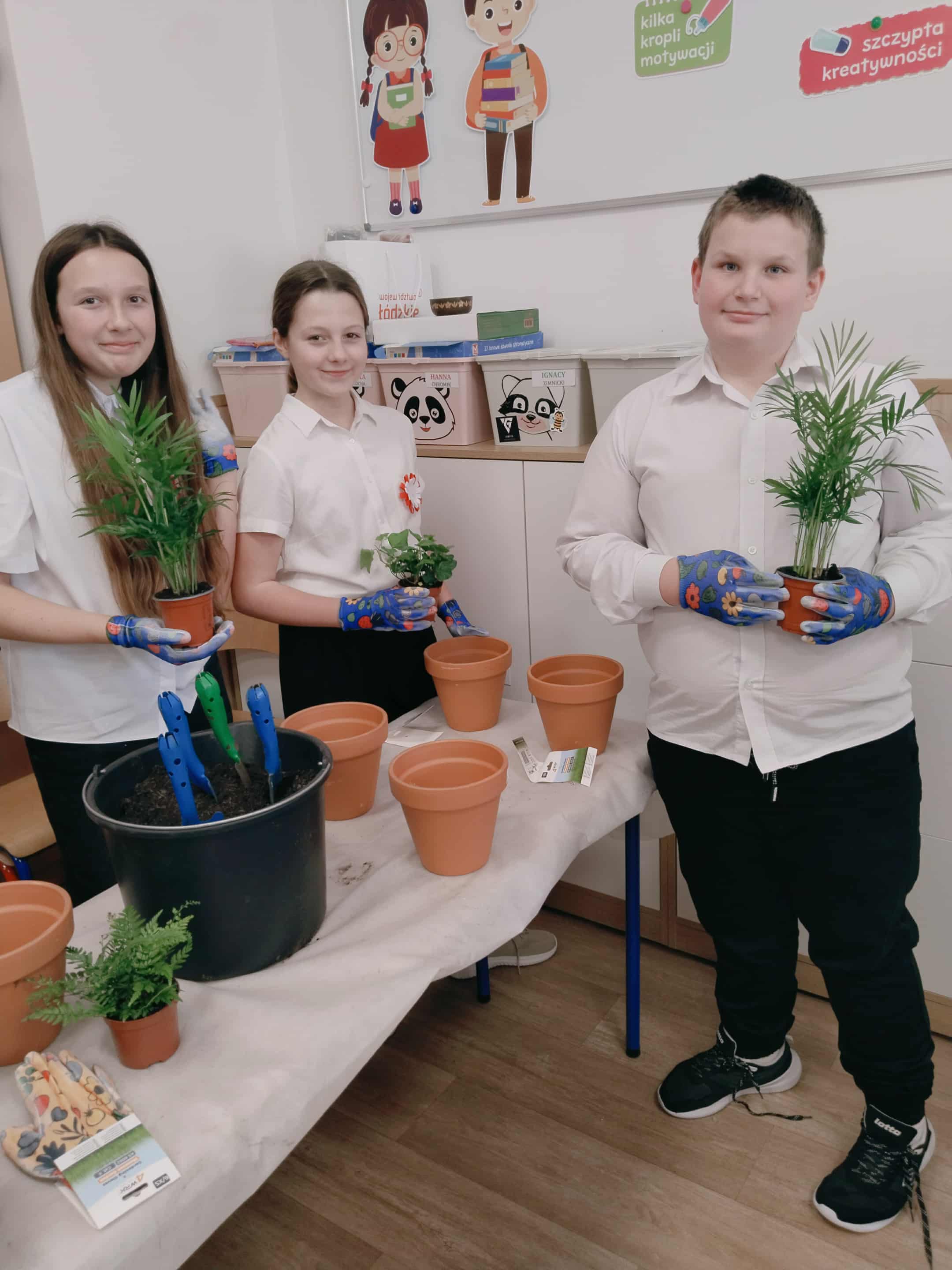 Po części teoretycznej uczniowie wzięli udział w warsztatach praktycznych. Zadaniem uczestników było posadzenie roślin w doniczkach – gatunków, które mają pozytywny wpływ na zdrowie i poprawiają jakość powietrza w pomieszczeniach. Dzięki temu każdy uczeń wykonał mały „zielony filtr”, który będzie przypominał o znaczeniu troski o środowisko.