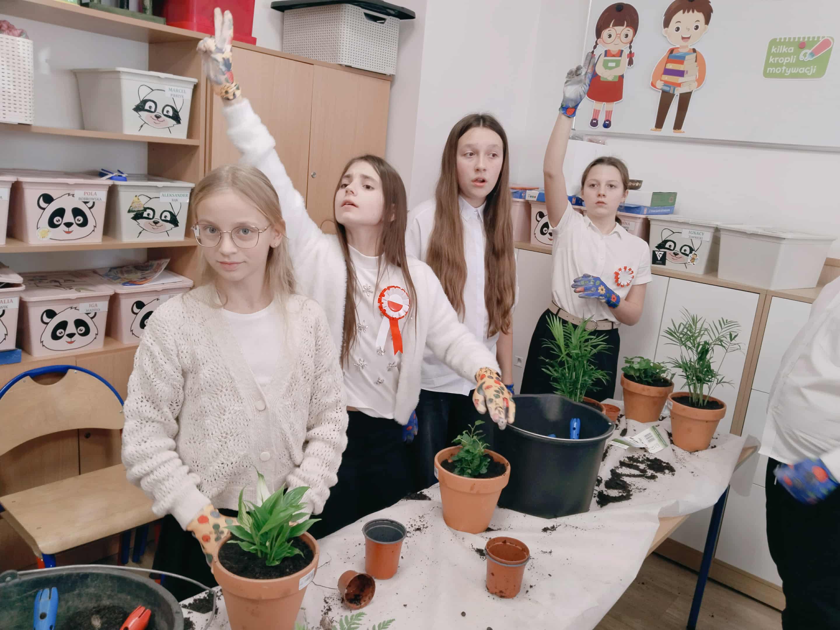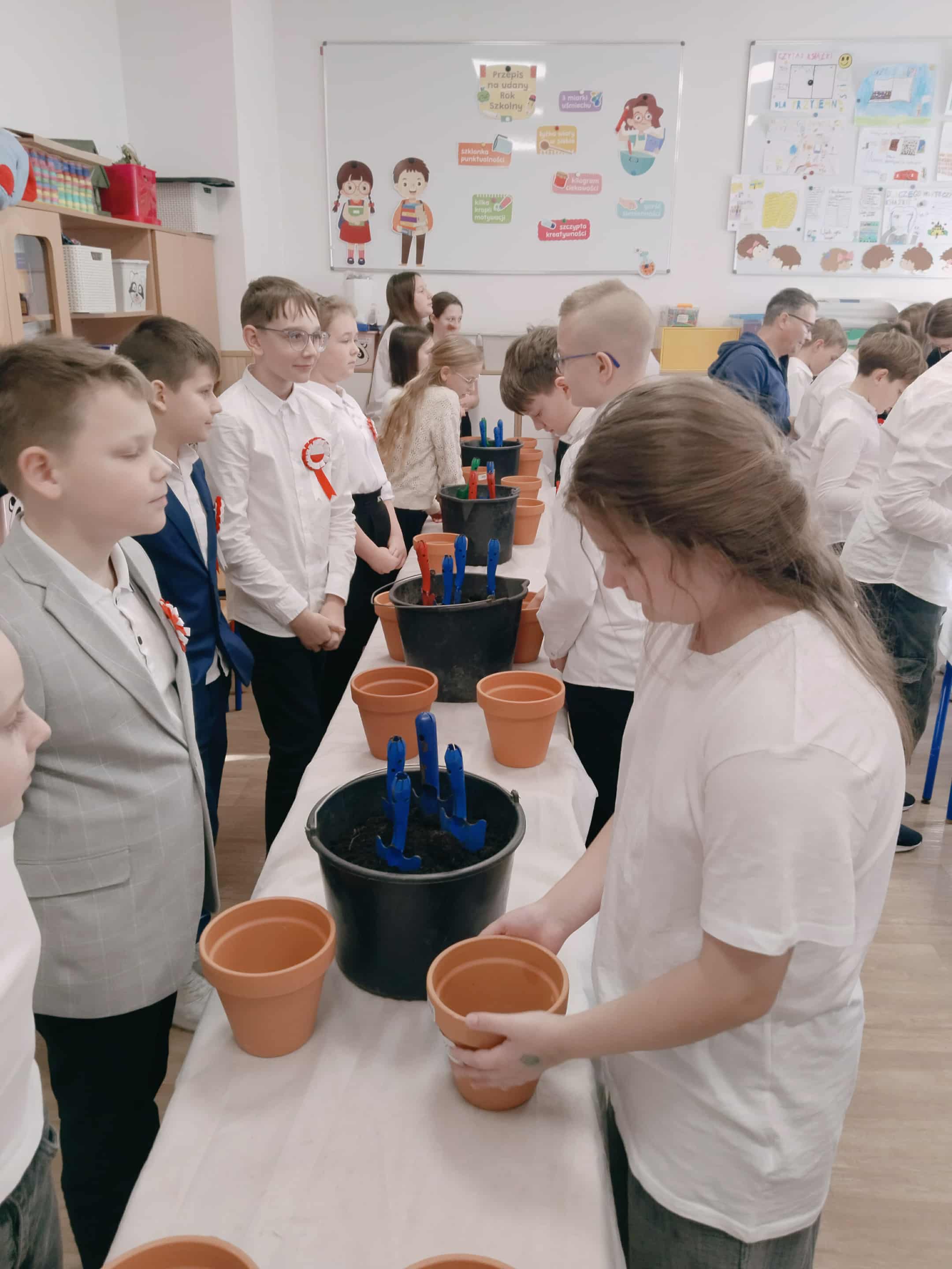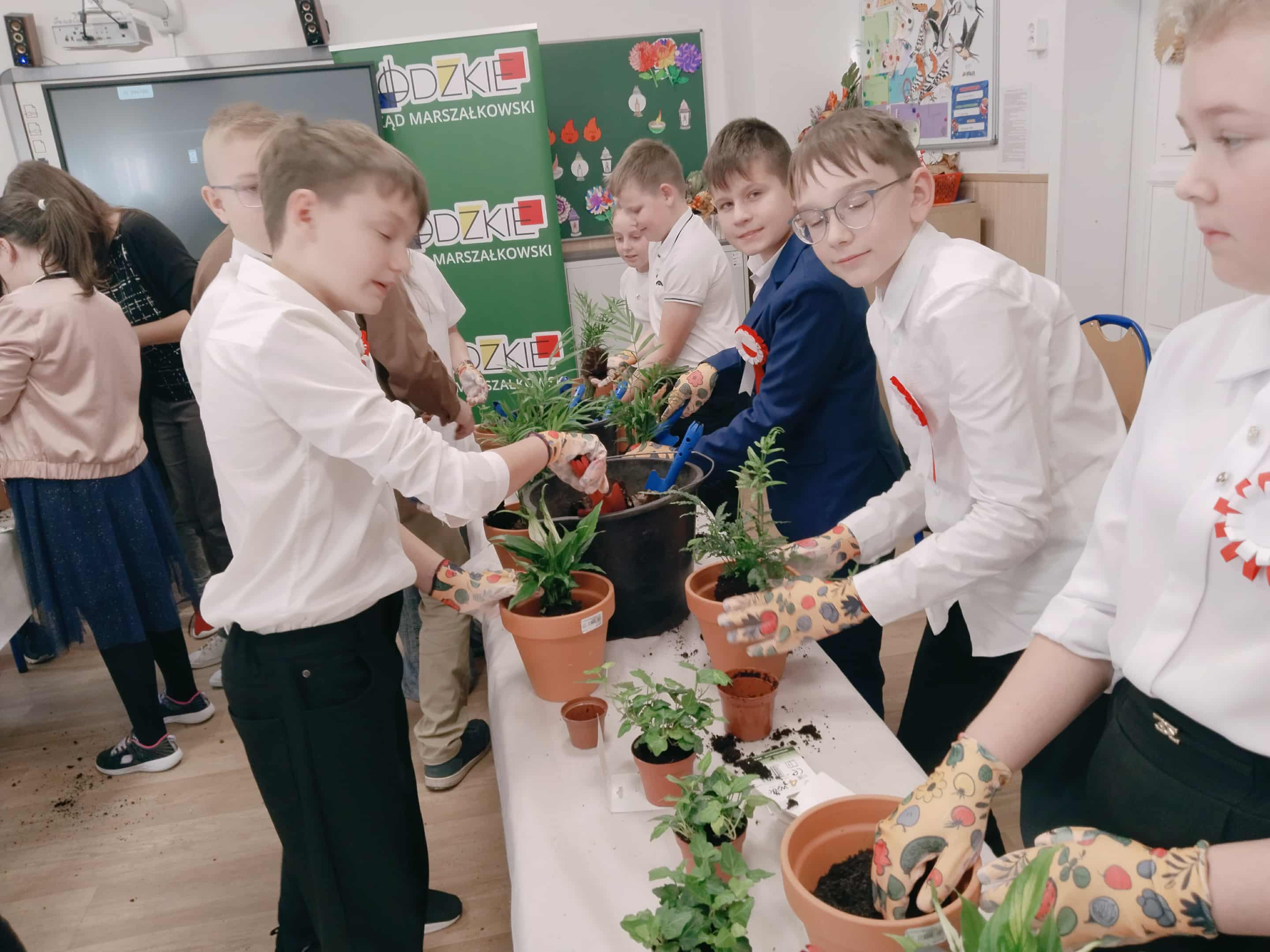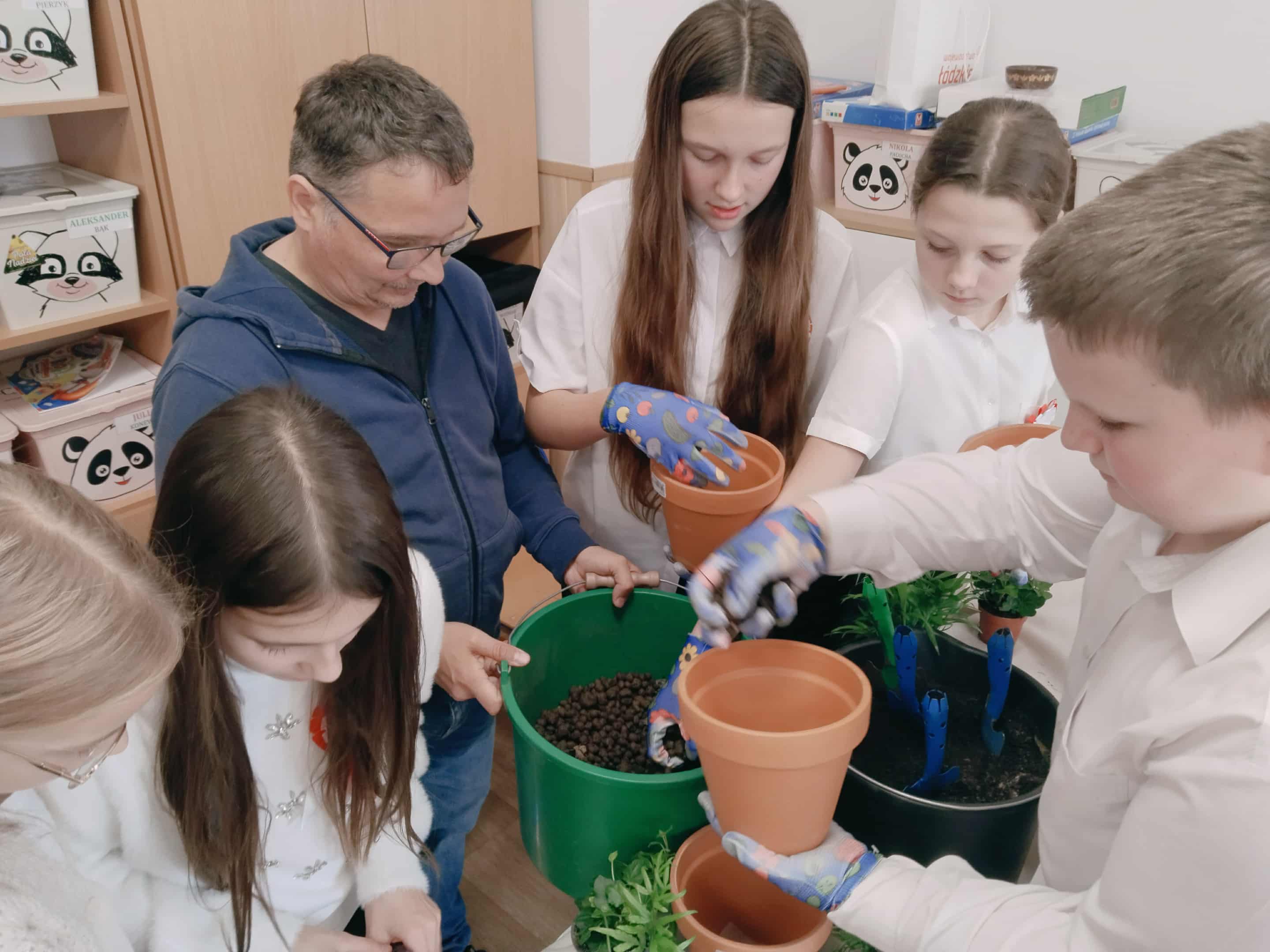 Po części teoretycznej uczniowie wzięli udział w warsztatach praktycznych. Zadaniem uczestników było posadzenie roślin w doniczkach – gatunków, które mają pozytywny wpływ na zdrowie i poprawiają jakość powietrza w pomieszczeniach. Dzięki temu każdy uczeń wykonał mały „zielony filtr”, który będzie przypominał o znaczeniu troski o środowisko.