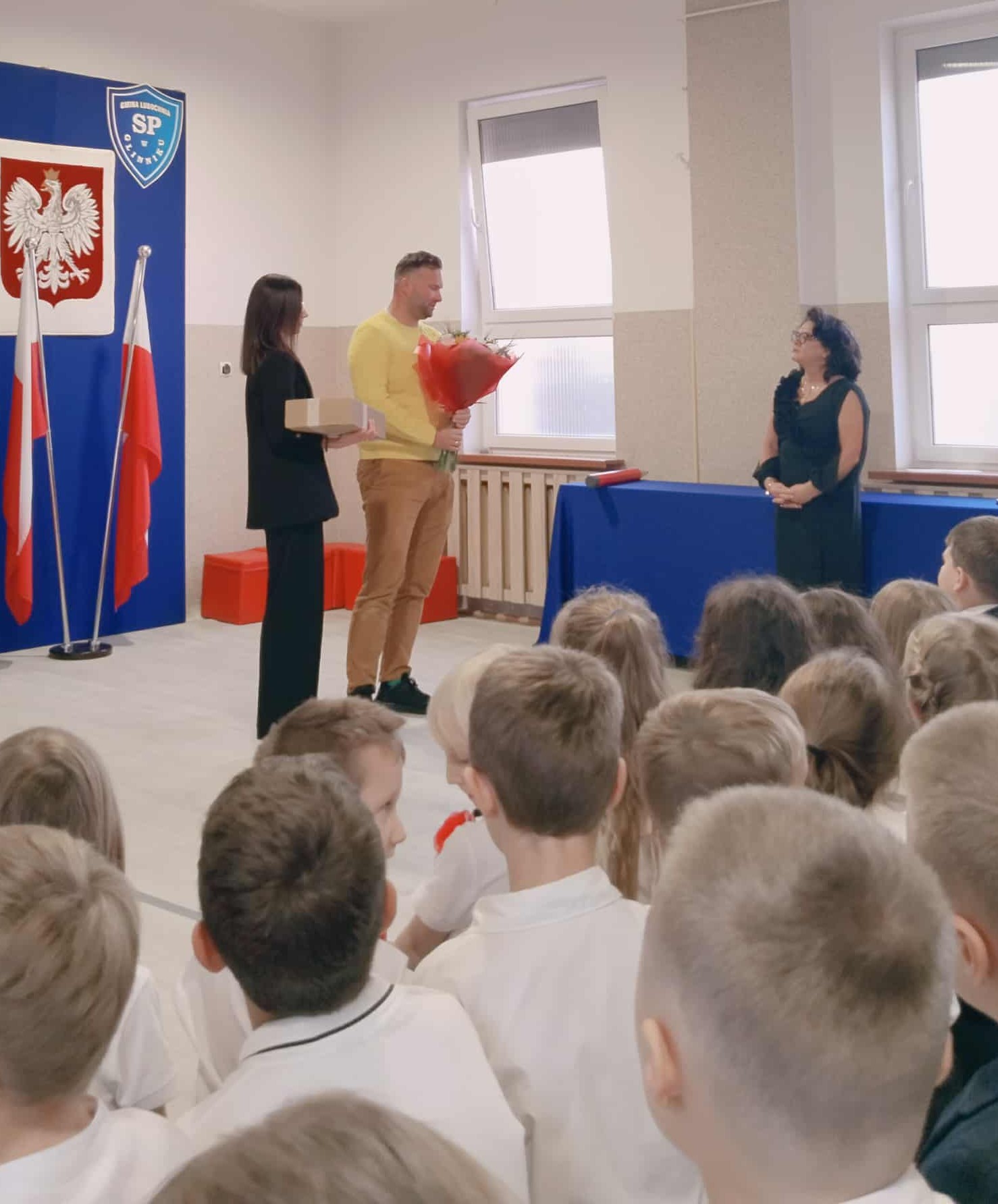 Nie zabrakło również głosu rodziców. Obecni na akademii - pani Aneta Kagankiewicz i przewodniczący Rady Rodziców - pan Kamil Trepiak złożyli życzenia wszystkim pracownikom szkoły, podkreślając, jak ważną rolę odgrywają w życiu ich dzieci.