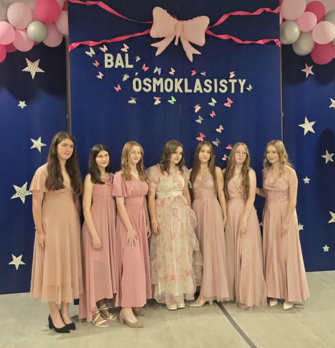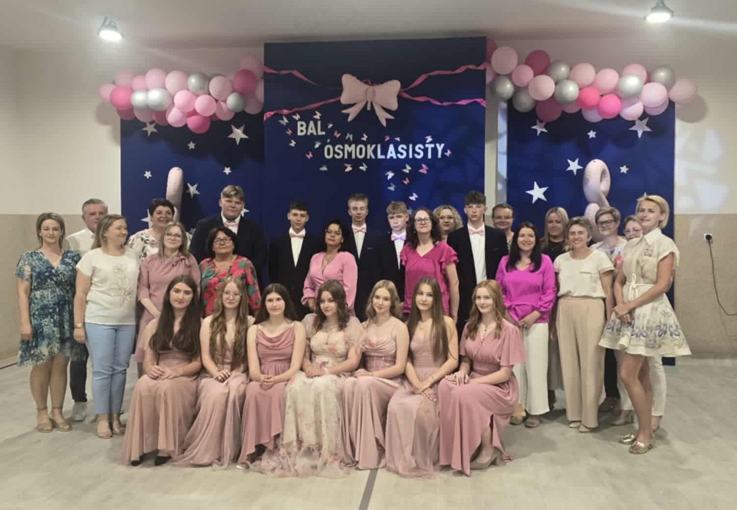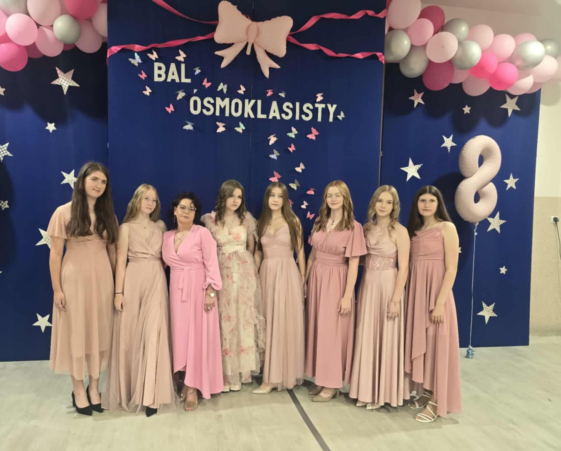W ciepły, czerwcowy wieczór odbył się uroczysty bal pożegnalny klasy VIII, który na długo pozostanie w pamięci uczniów, rodziców i nauczycieli. Sala balowa została przepięknie udekorowana w odcieniach różu, tworząc elegancką i zarazem romantyczną atmosferę. Dominowały pudrowe tonacje, które idealnie współgrały z wyjątkowymi stylizacjami naszych absolwentów.