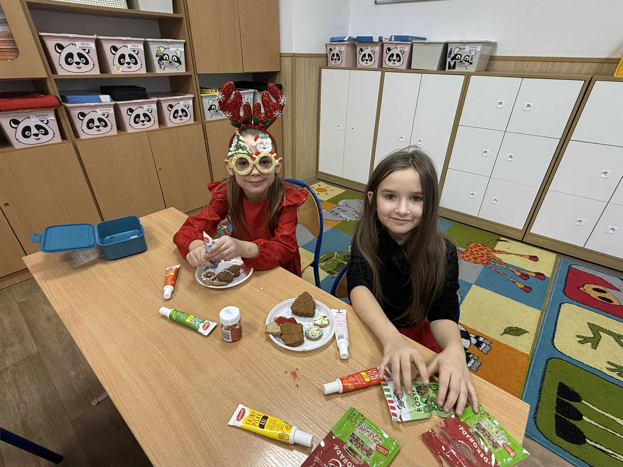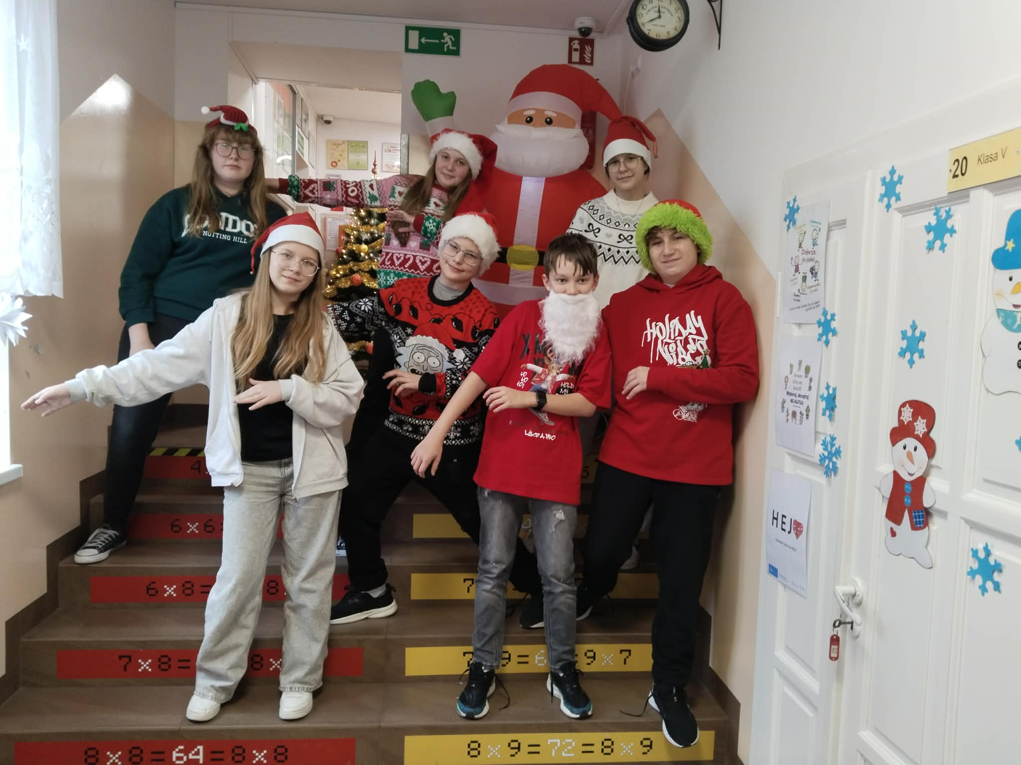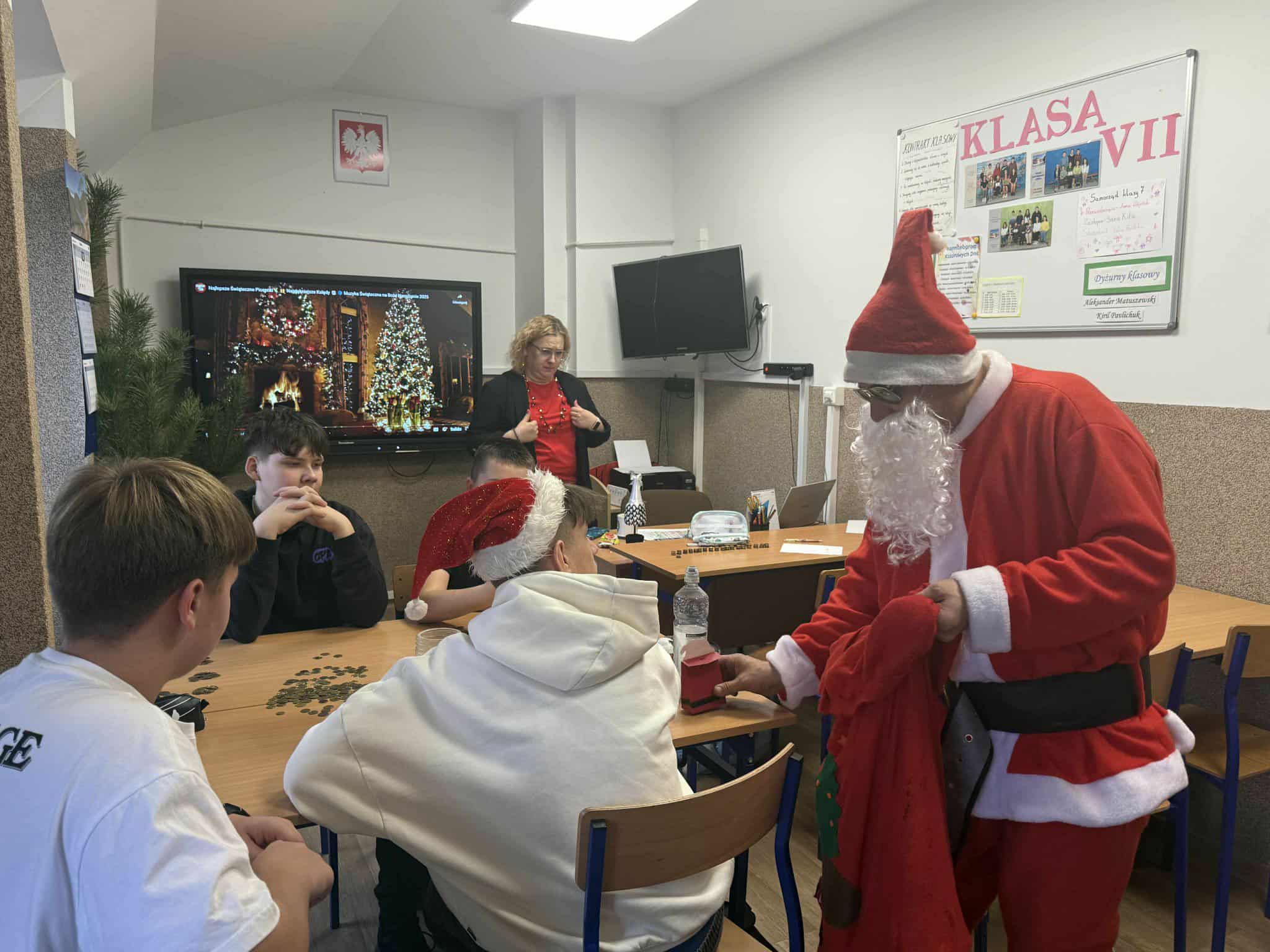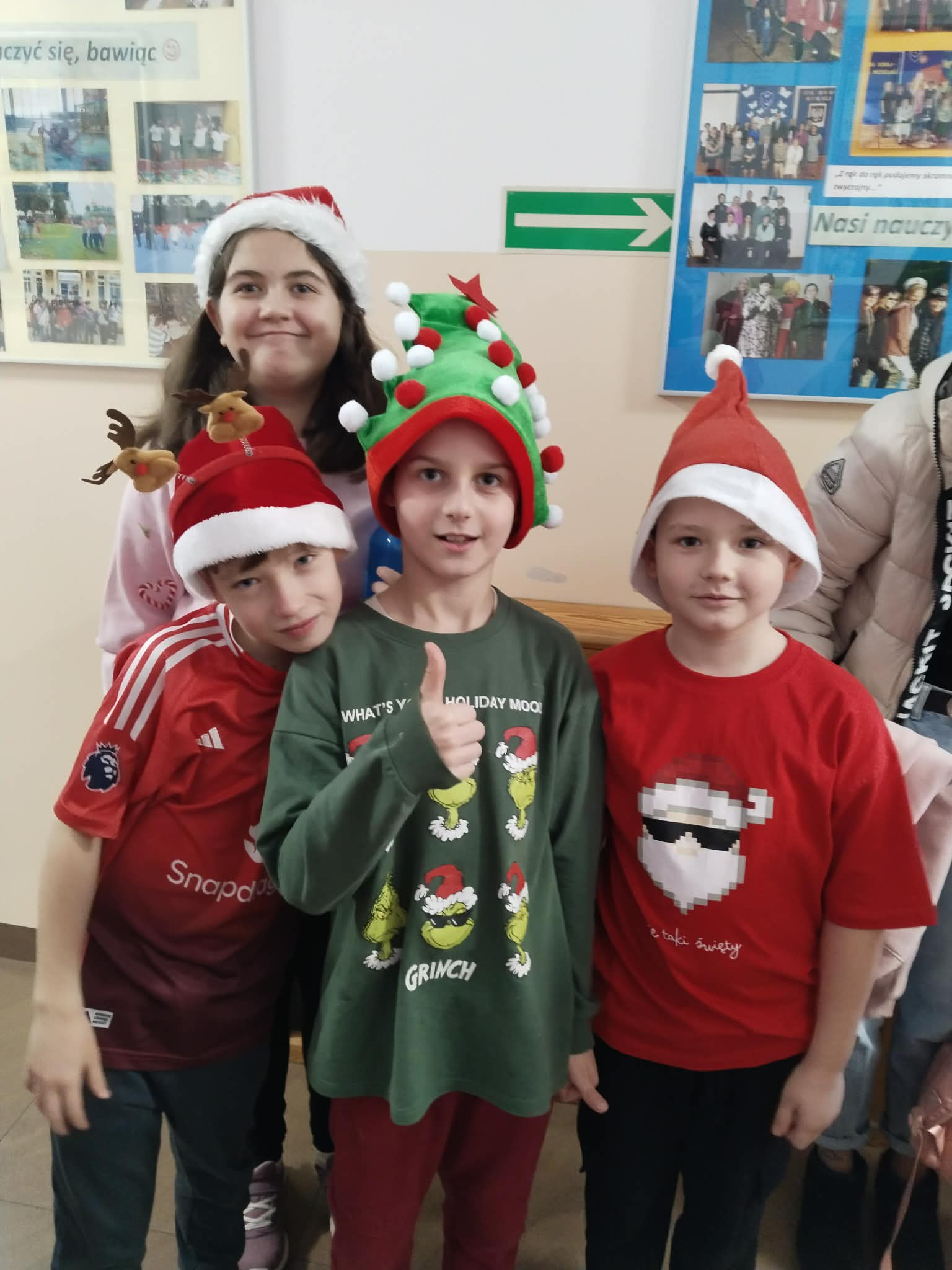 6 grudnia w naszej szkole zapanowała prawdziwie świąteczna atmosfera! Uczniowie i nauczyciele założyli mikołajkowe czapki oraz kolorowe, zimowe sweterki, wprowadzając wszystkich w magiczny nastrój. Nie zabrakło oczywiście najważniejszego gościa Świętego Mikołaja, który obdarował dzieci drobnymi upominkami, słodyczami ufundowanymi przez Radę Rodziców. Wspierały go uśmiechnięte elfy z Samorządu Uczniowskiego, rozdając prezentowe boksy pełne żelków i magnetycznych zakładek do książek. Najmłodsi uczniowie mieli okazję wykazać się kreatywnością, dekorując pachnące pierniczki. Wszyscy chętnie pozowali do wspólnych, radosnych zdjęć, które na długo będą przypominać o tym wyjątkowym dniu. To był czas pełen uśmiechu, zabawy i świątecznej magii! Dziękujemy wszystkim, którzy przyczynili się do organizacji tego wydarzenia.