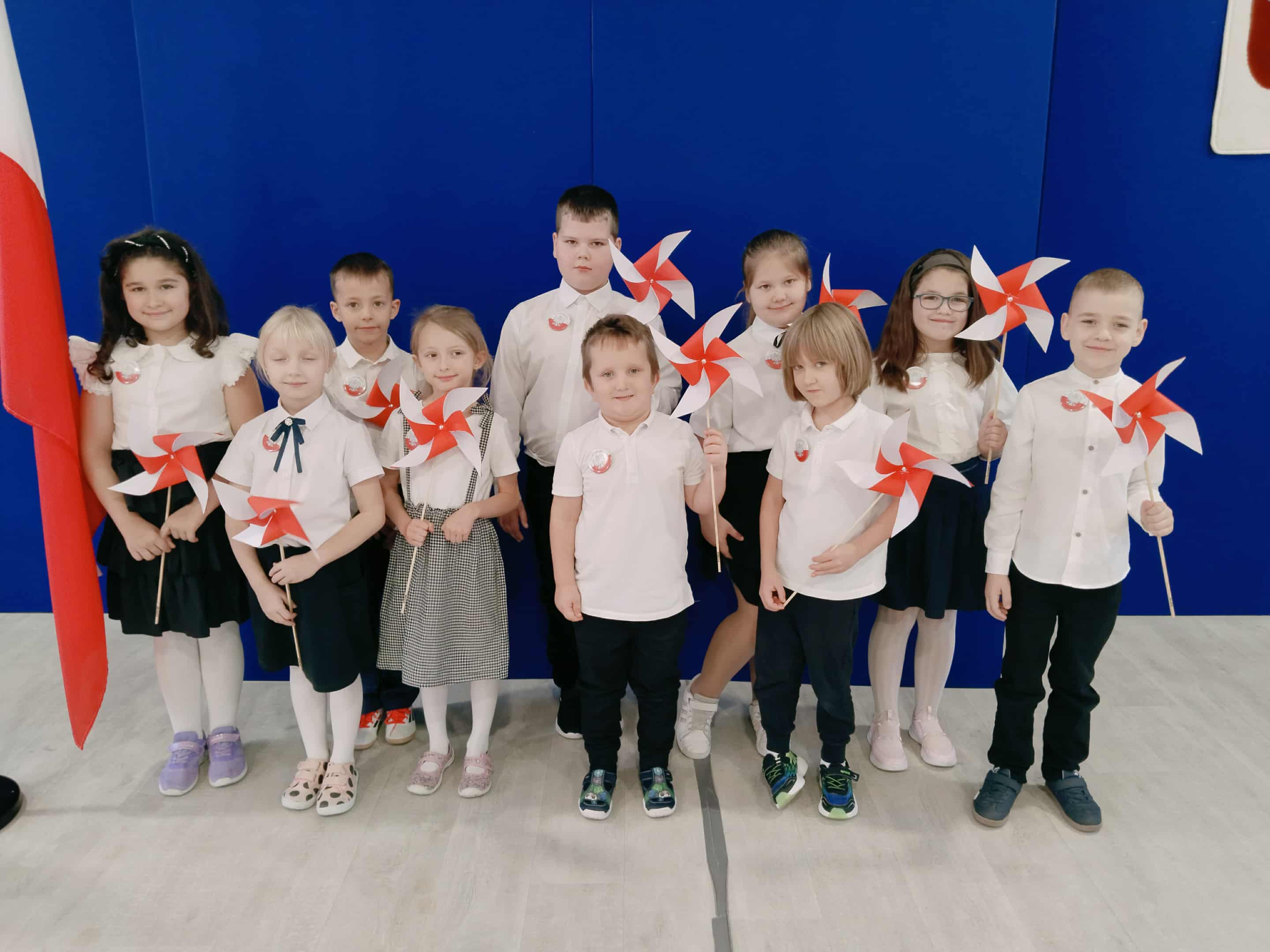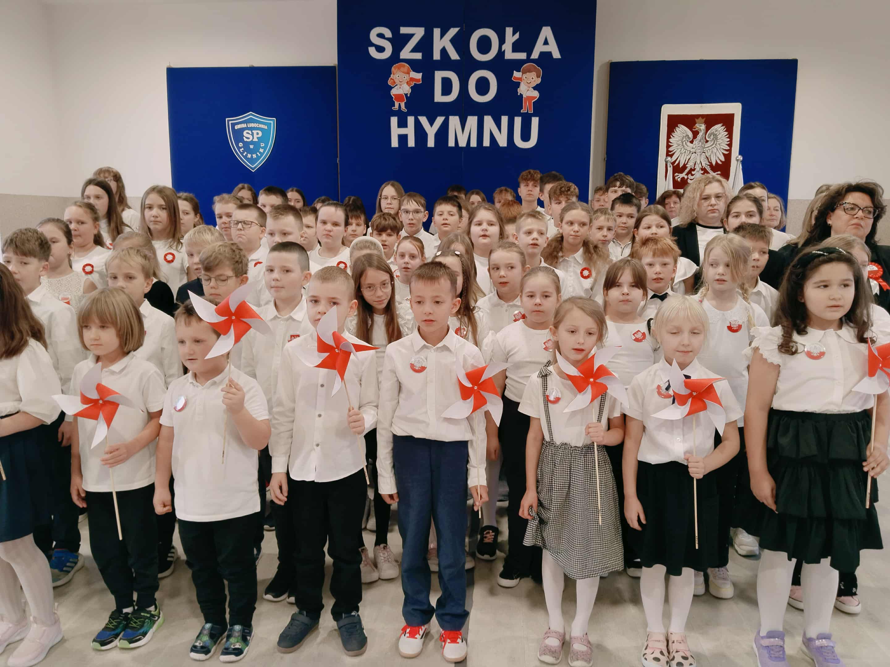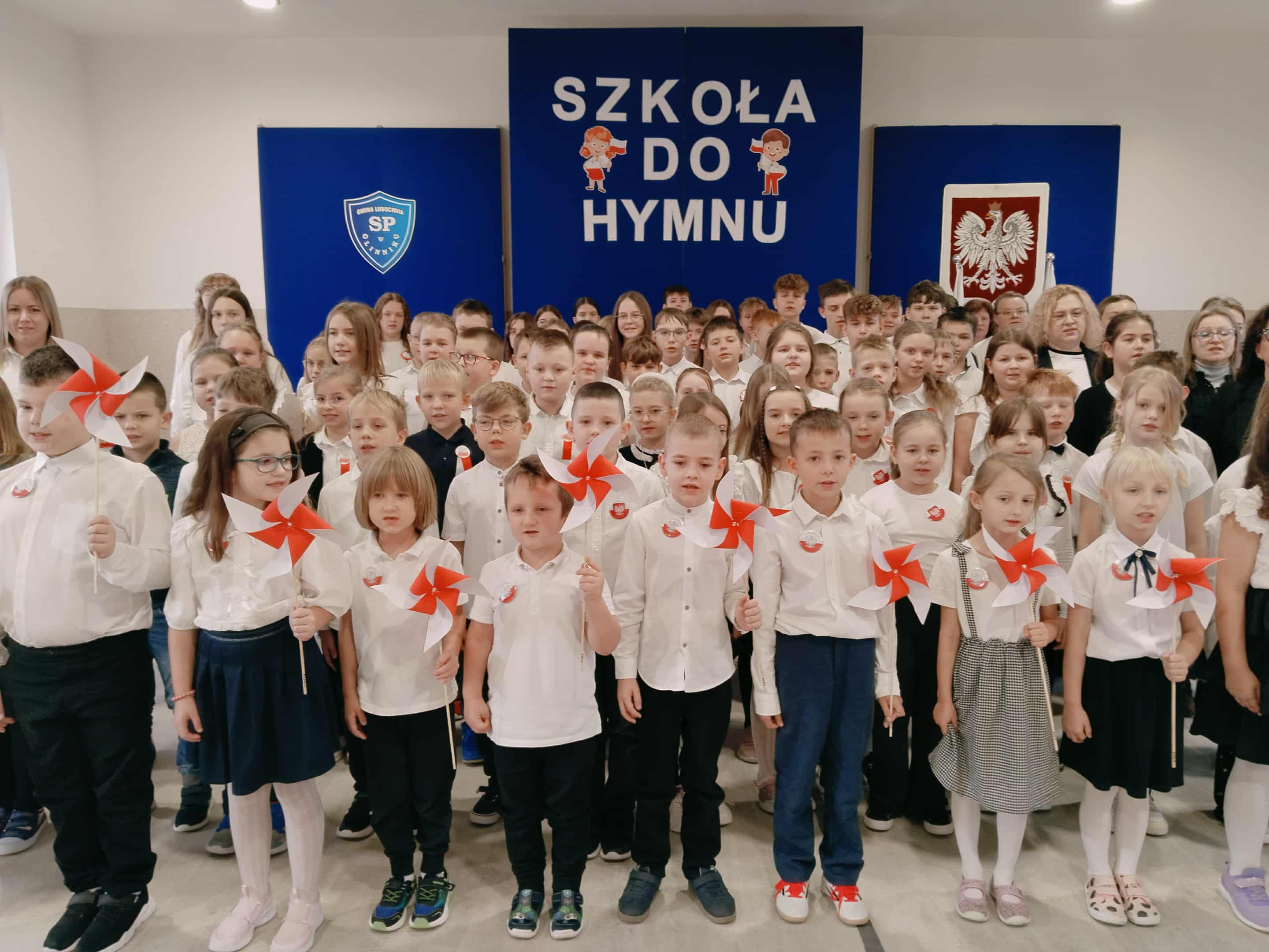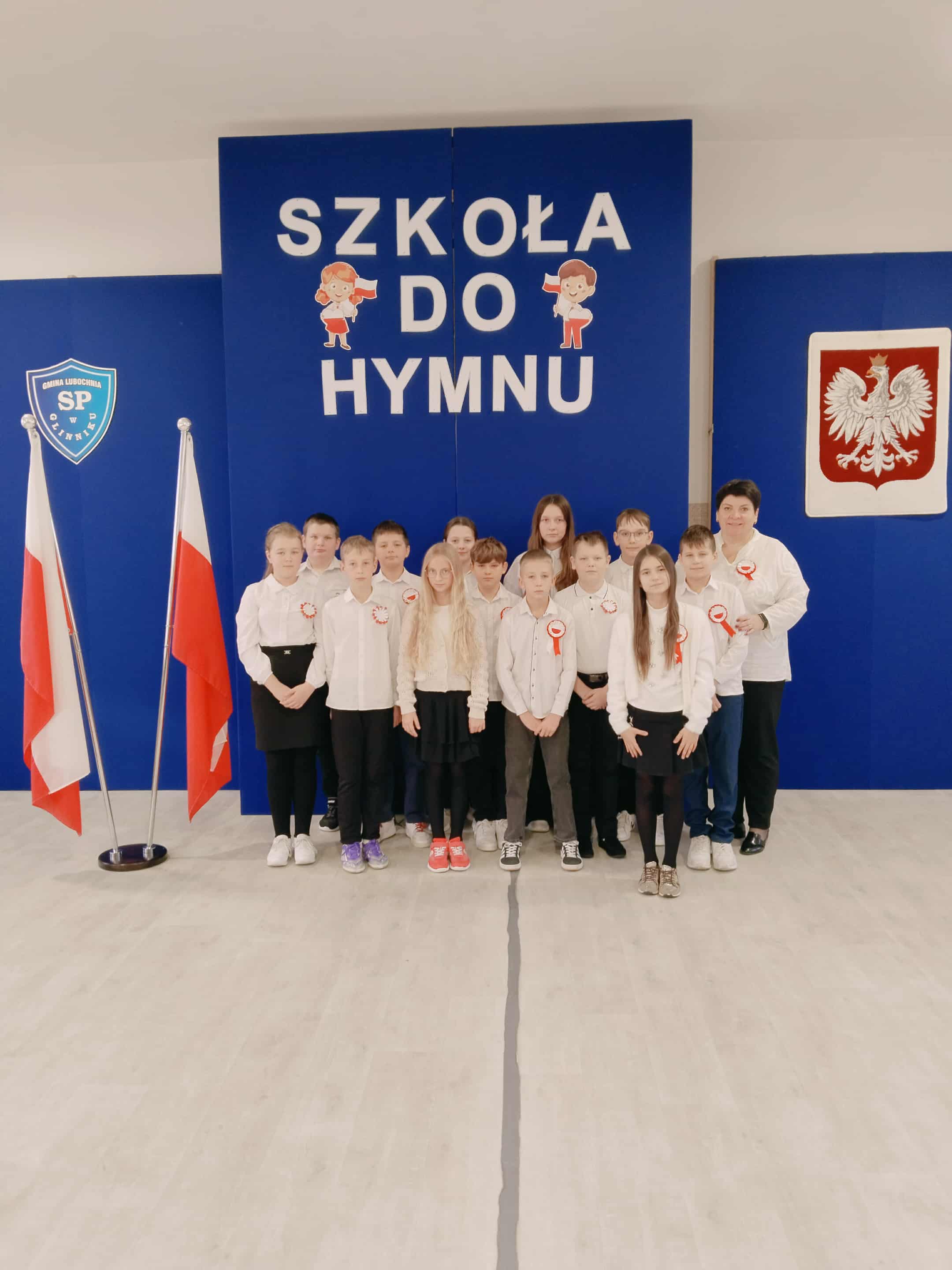 Uczniowie byli odświętnie ubrani – w stroje galowe, z biało-czerwonymi kotylionami, co podkreśliło patriotyczny charakter wydarzenia. Wspólne śpiewanie hymnu narodowego to piękny sposób na uczczenie Narodowego Święta Niepodległości i okazja do wyrażenia dumy z bycia Polakami.