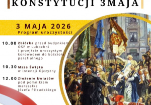 Zachęcamy także do udziału w gminnych obchodach 235. Rocznicy Uchwalenia Konstytucji 3 Maja w Lubochni od godz. 10.00.