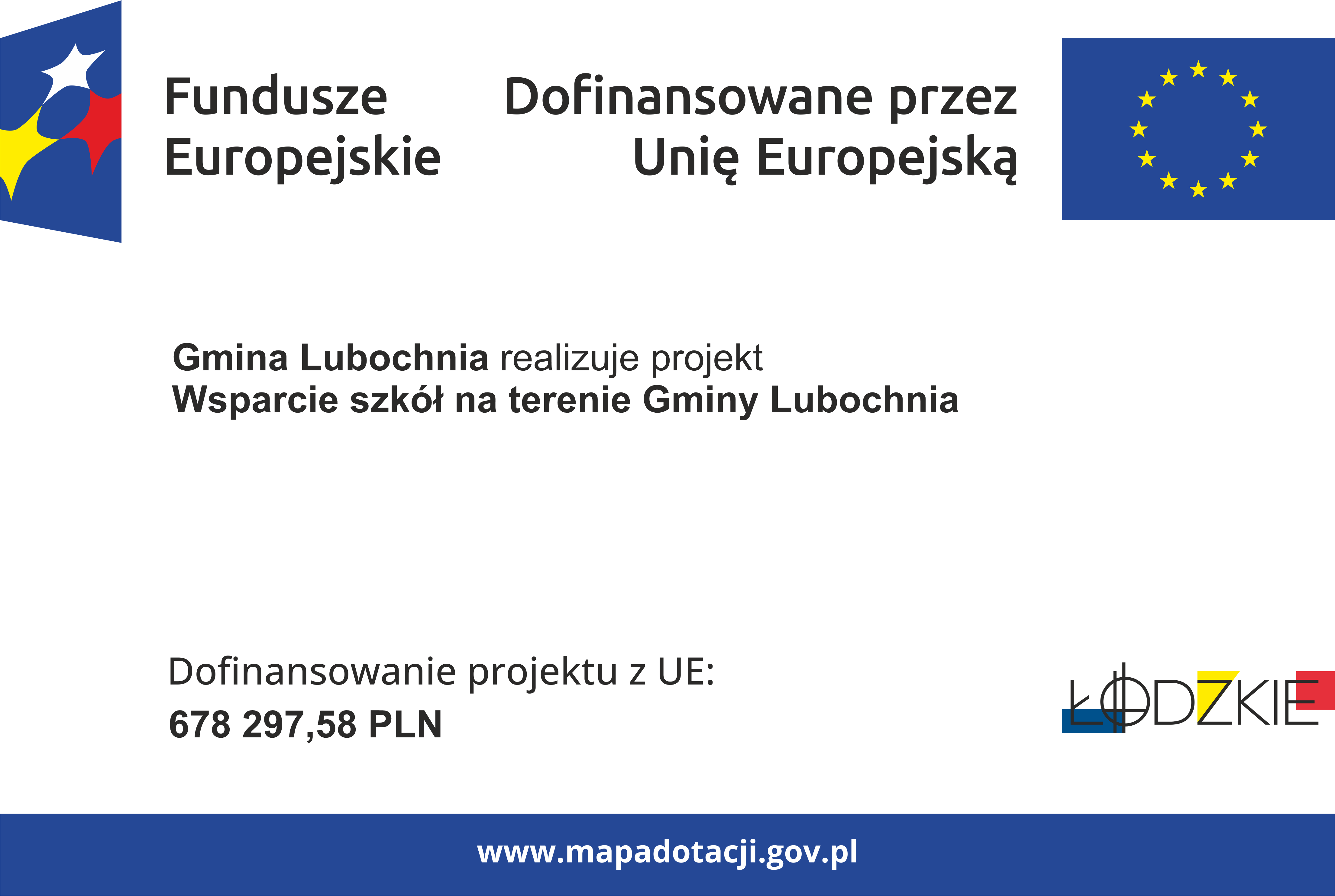 Projekt FELD.08.07-IZ.00-0019/25 "Wsparcie dla szkół na terenie Gminy Lubochnia" realizowany jest w ramach działania FELD.08.07 Kształcenie ogólne, finansowanego z Europejskiego Funduszu Społecznego Plus w Programie Regionalnym Fundusze Europejskie dla Łódzkiego 2021–2027. Głównym celem projektu jest kompleksowe wsparcie szkół podstawowych działających na terenie Gminy Lubochnia, a także podniesienie jakości edukacji oraz wyrównywanie szans uczniów.
