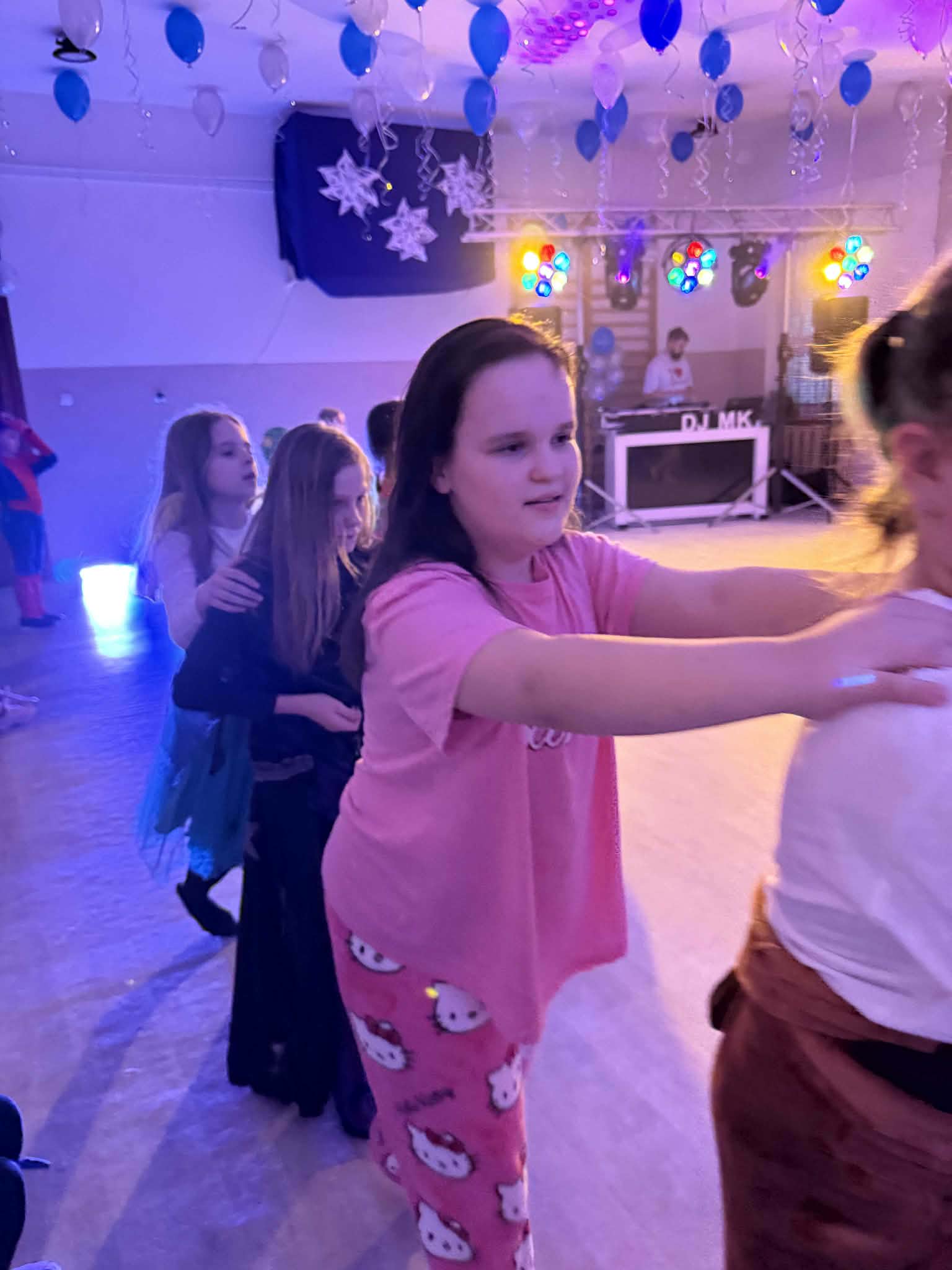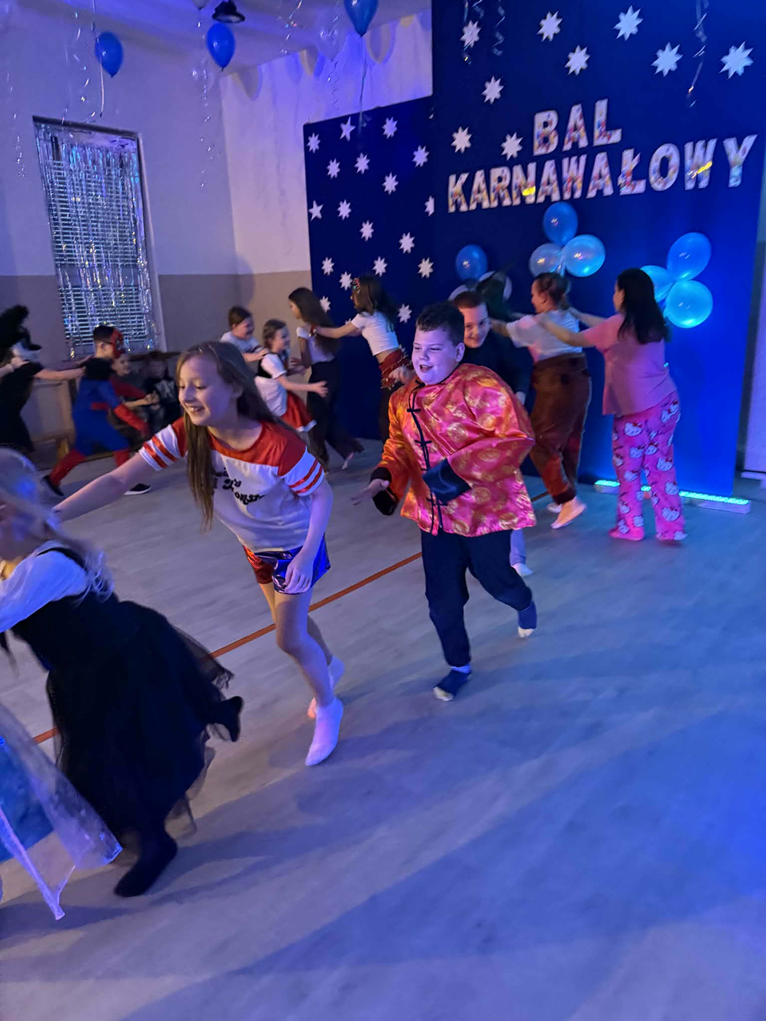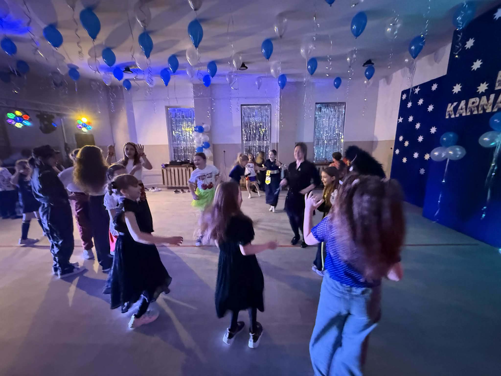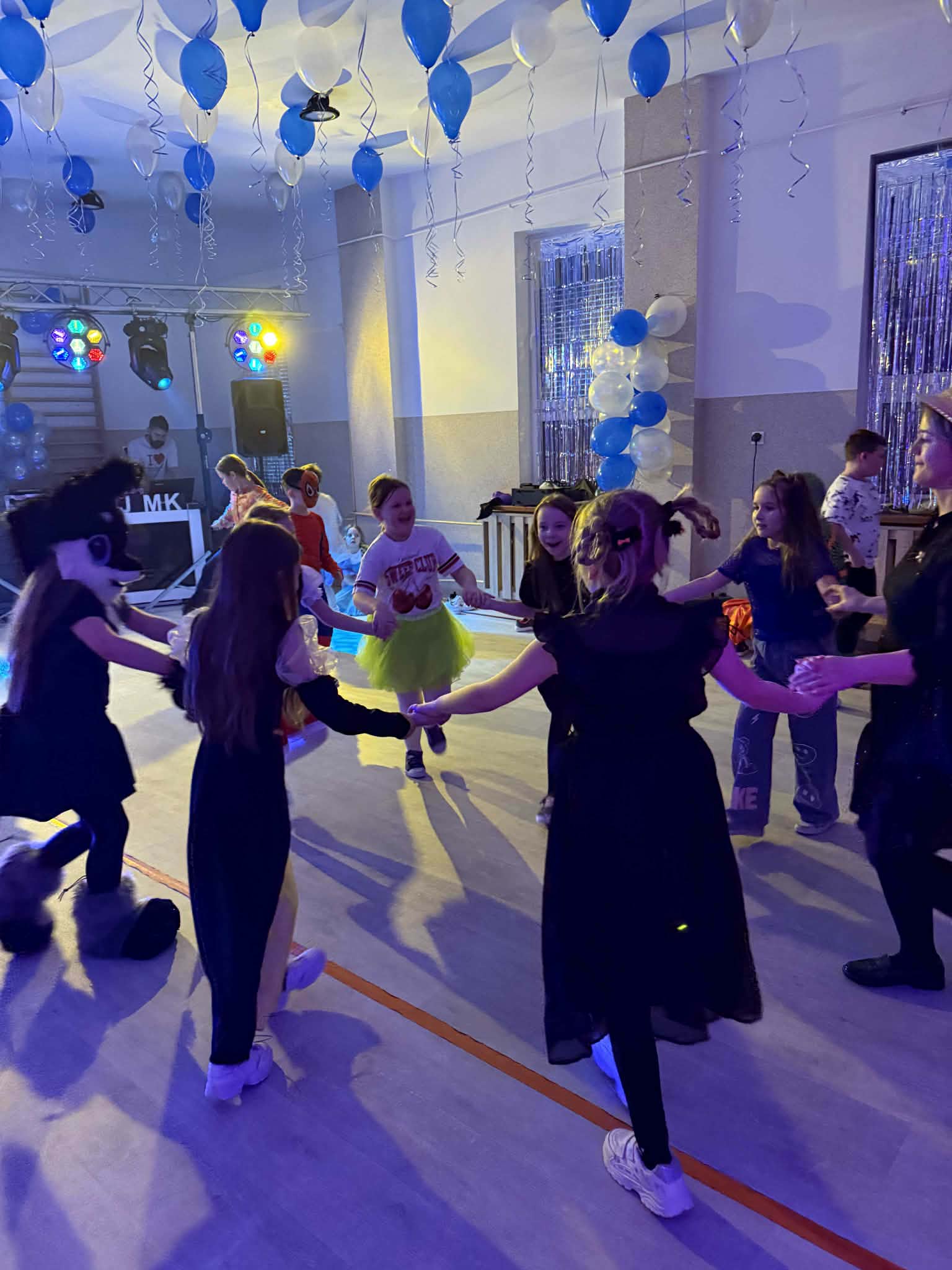 Zabawa została zorganizowana w dwóch turach, najpierw bawili się młodsi uczniowie z klas I - IV, a potem starsi - klasy V - VIII, dzięki czemu każdy mógł czuć się swobodnie i bawić w gronie rówieśników.