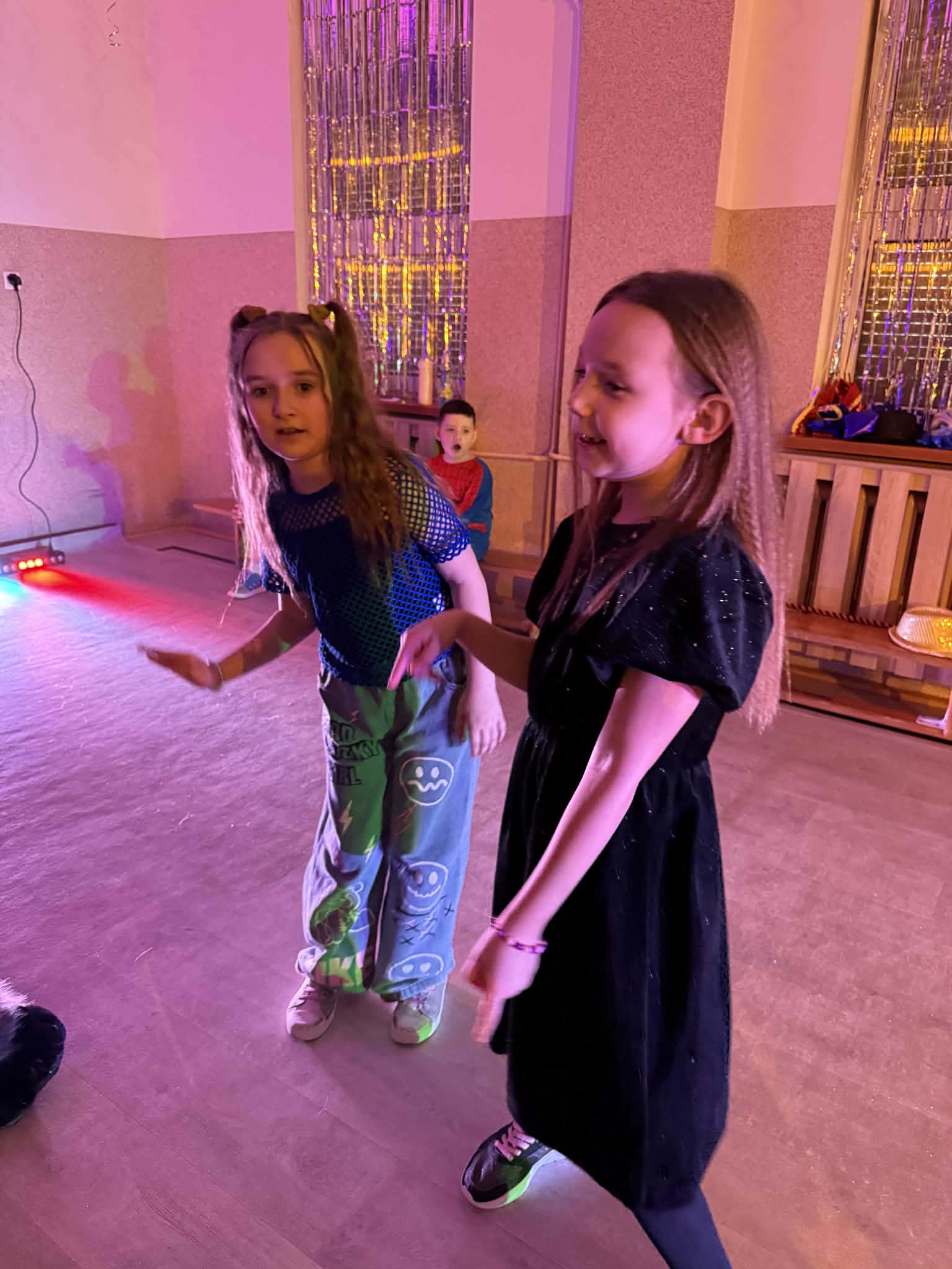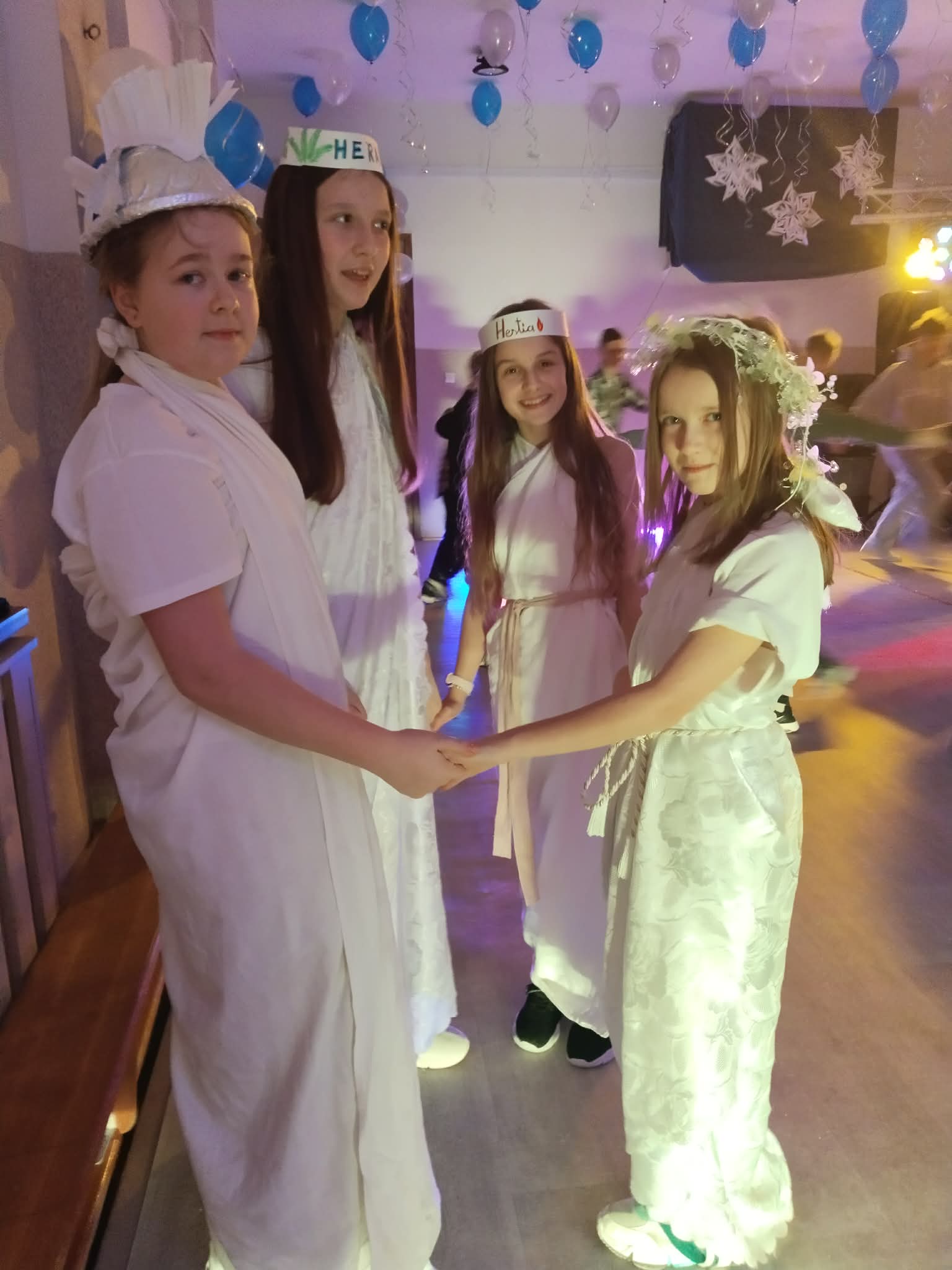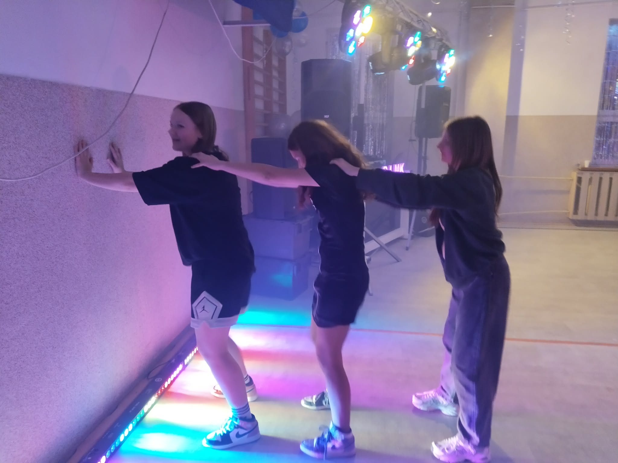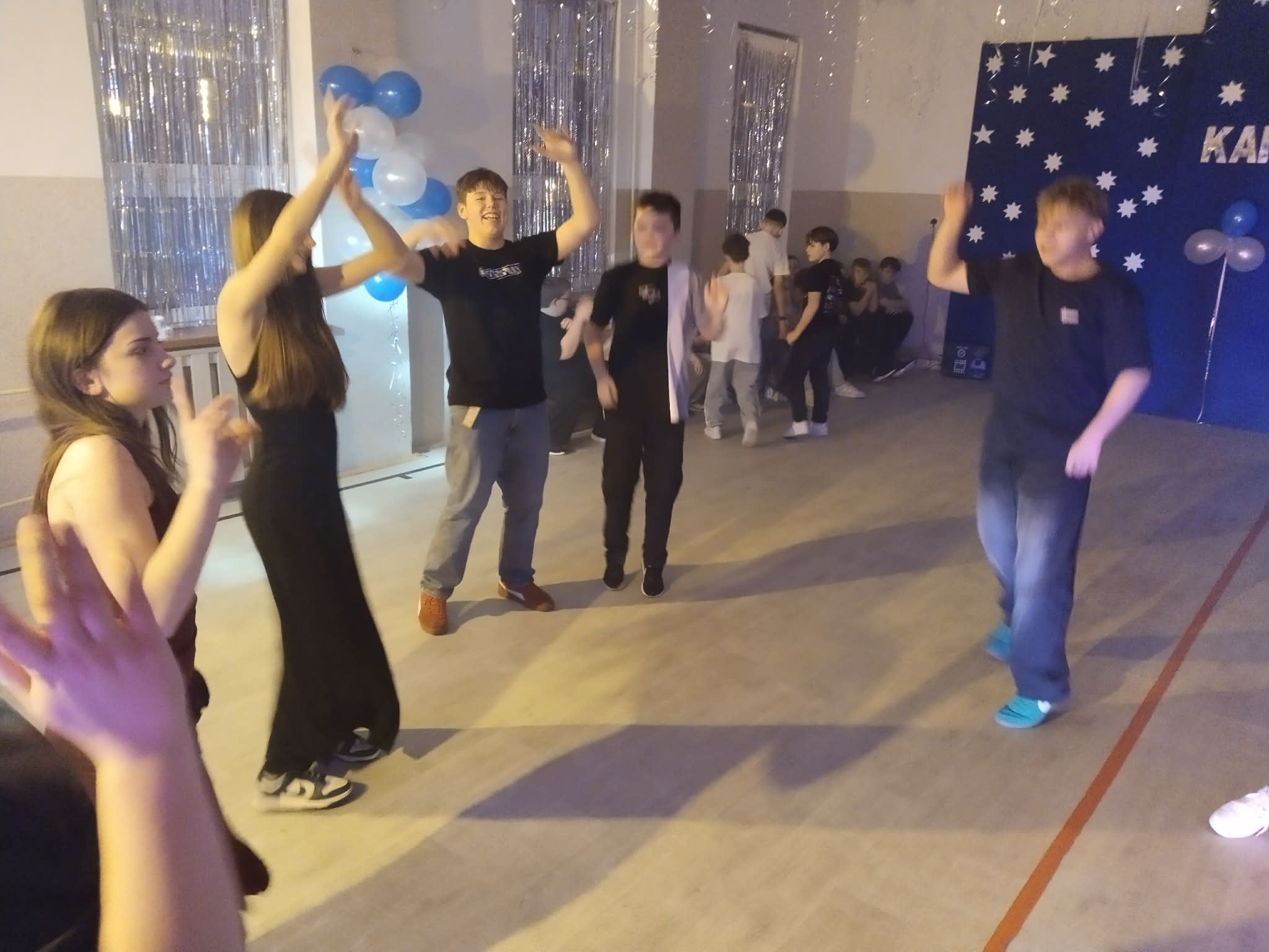 Zabawa została zorganizowana w dwóch turach, najpierw bawili się młodsi uczniowie z klas I - IV, a potem starsi - klasy V - VIII, dzięki czemu każdy mógł czuć się swobodnie i bawić w gronie rówieśników.