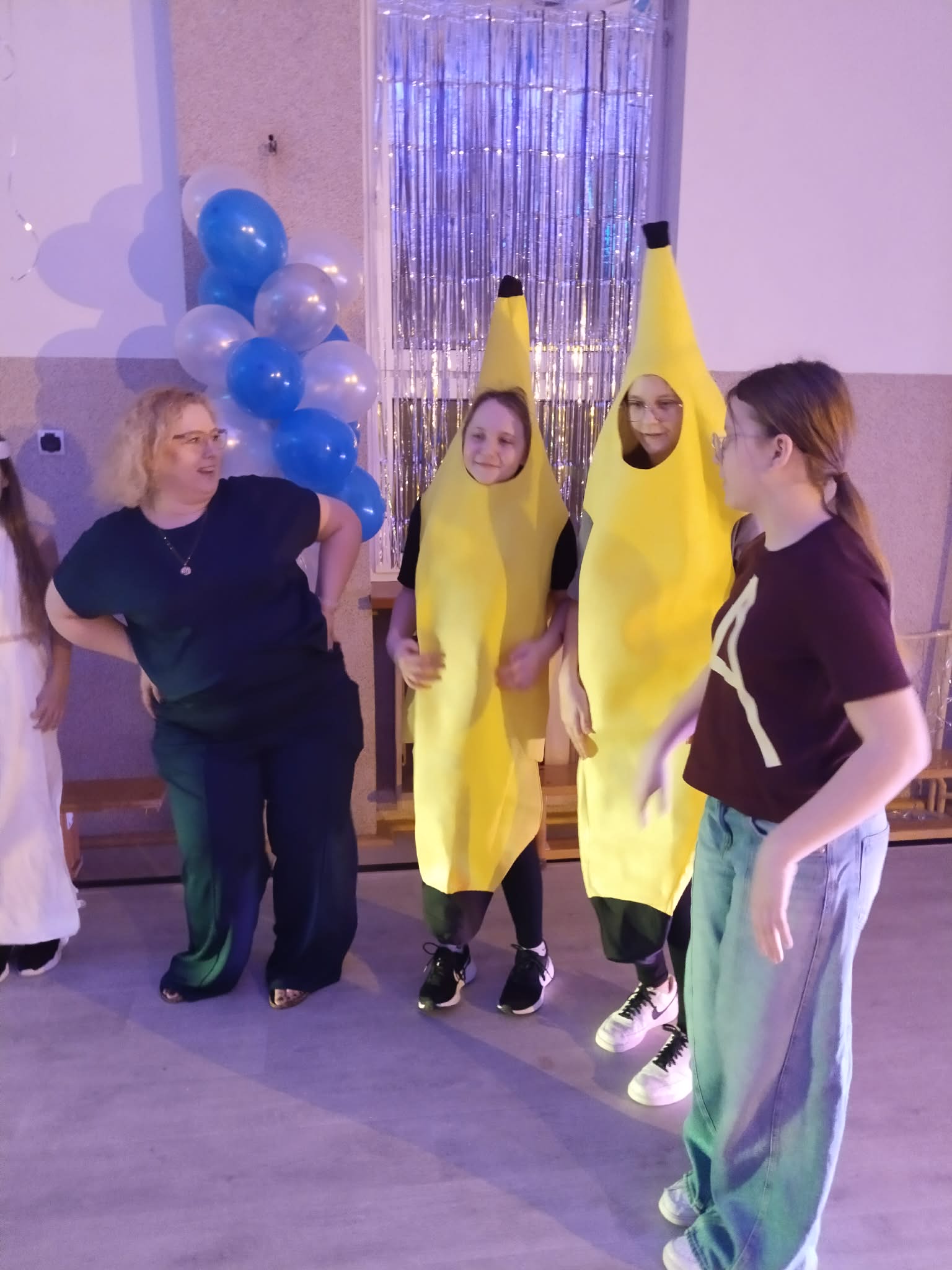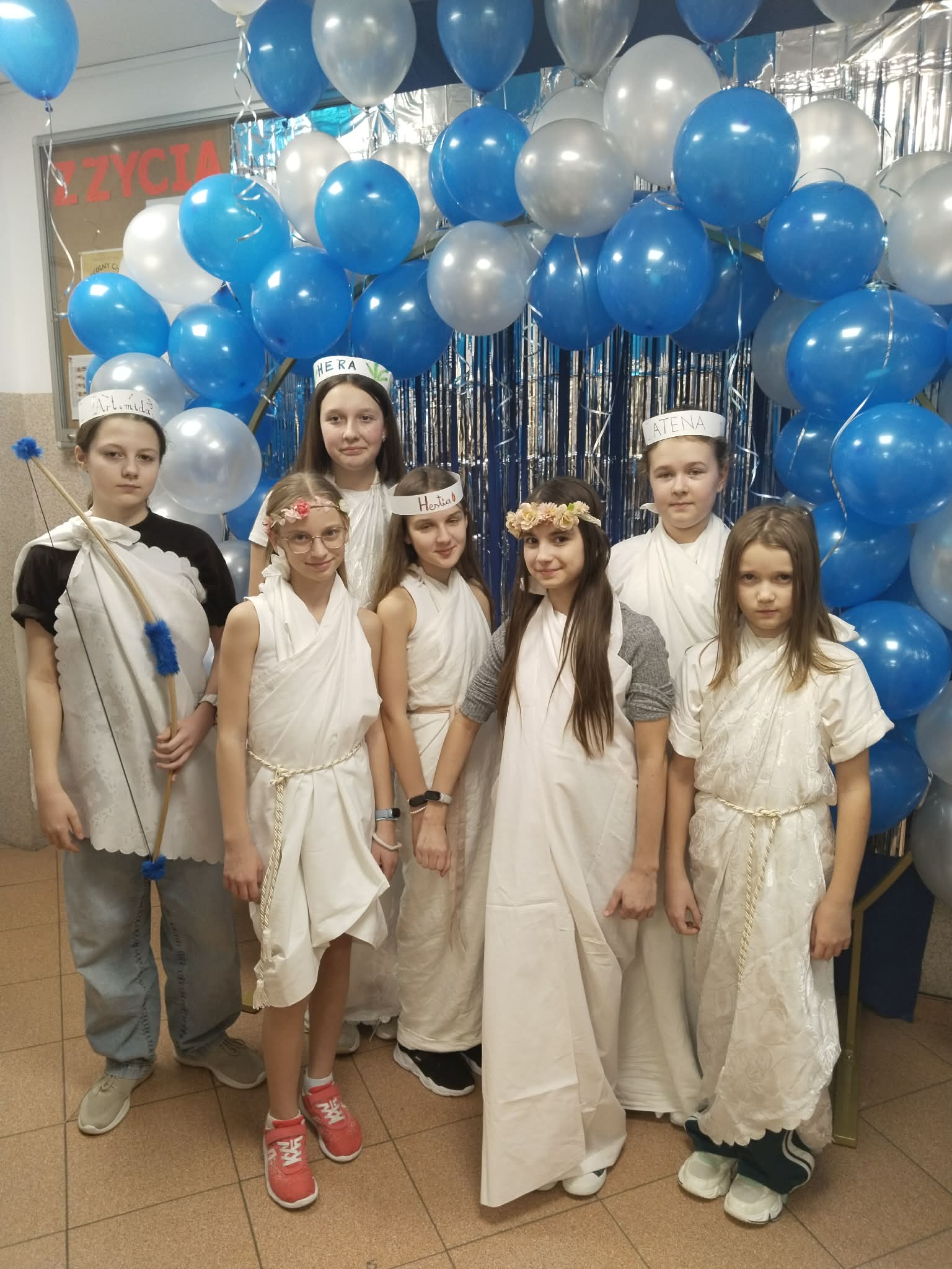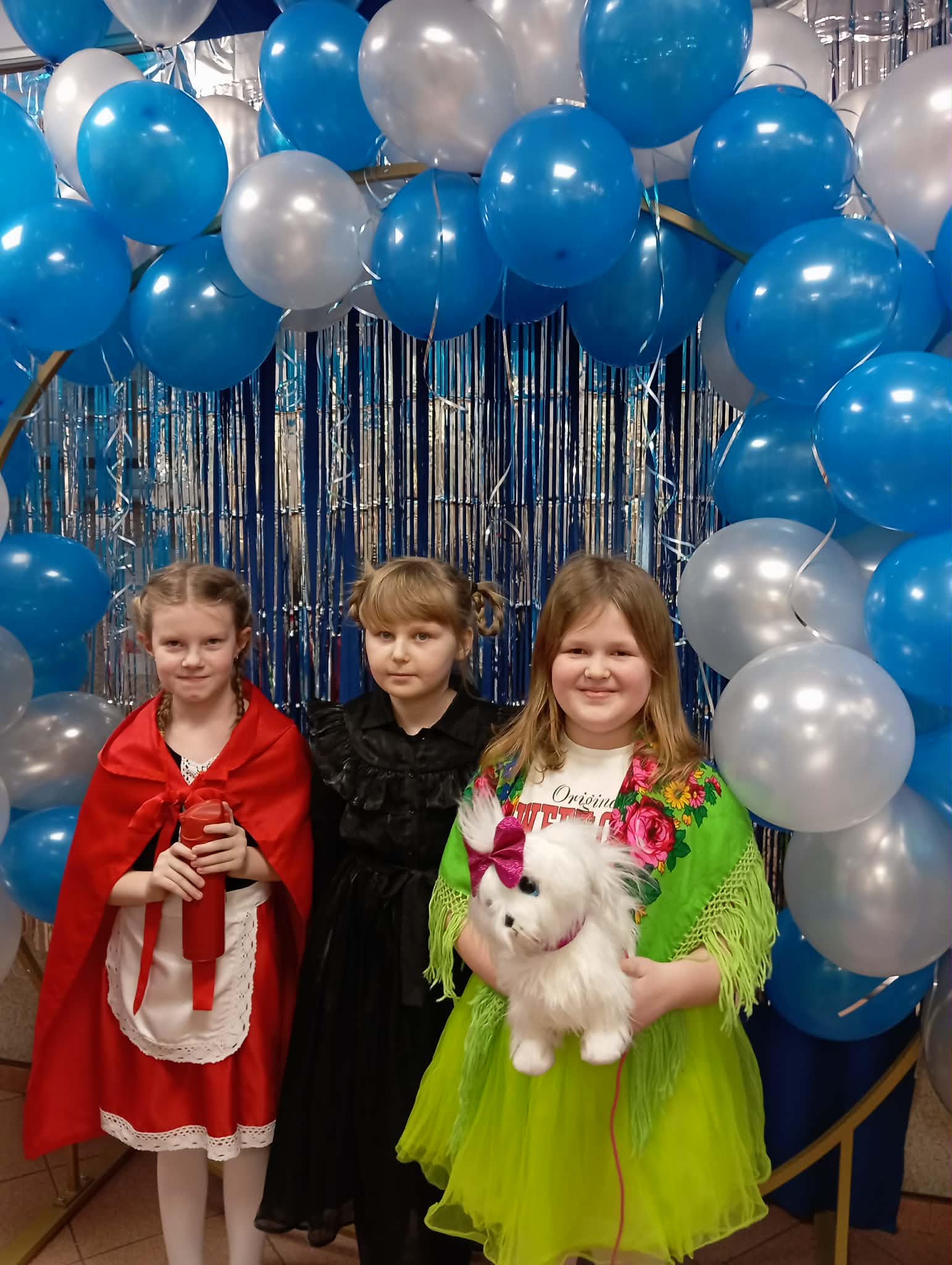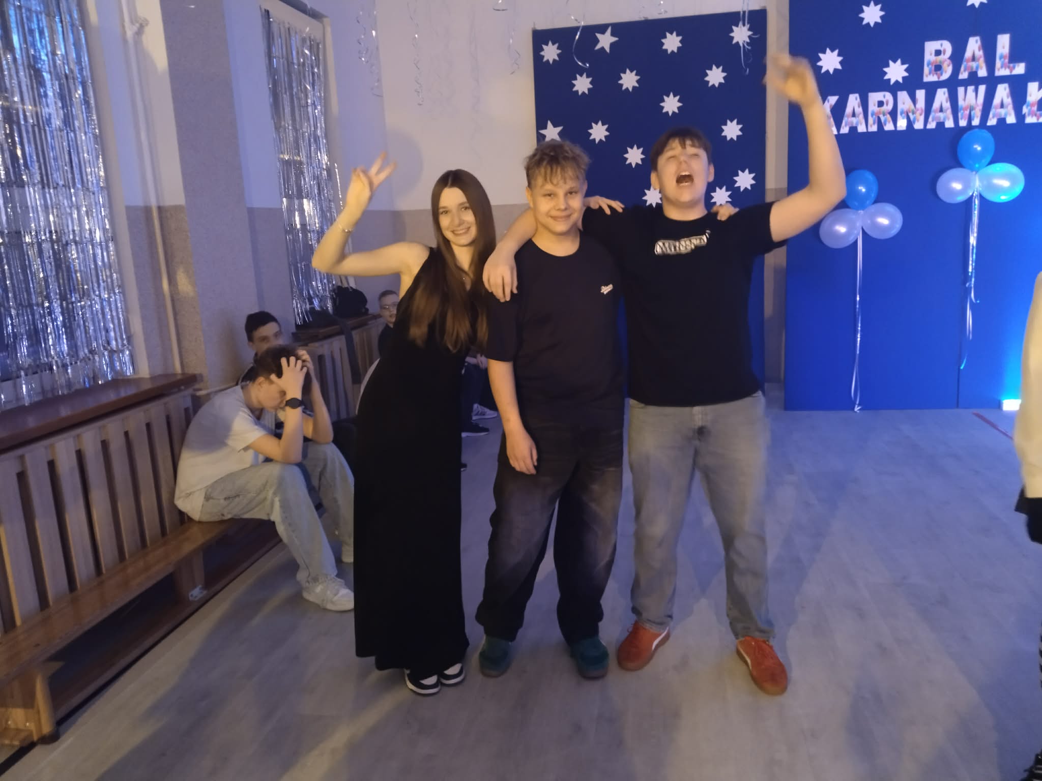 Wielu uczniów pojawiło się w barwnych i pomysłowych strojach karnawałowych, co dodało wydarzeniu niezwykłego uroku. Dużym zainteresowaniem cieszyła się również ścianka do robienia zdjęć, przy której powstało mnóstwo pamiątkowych fotografii.